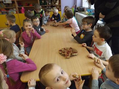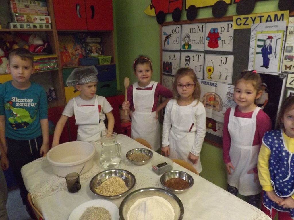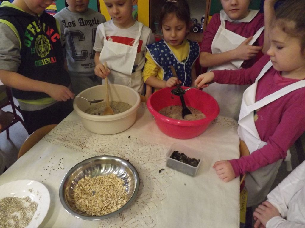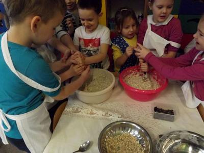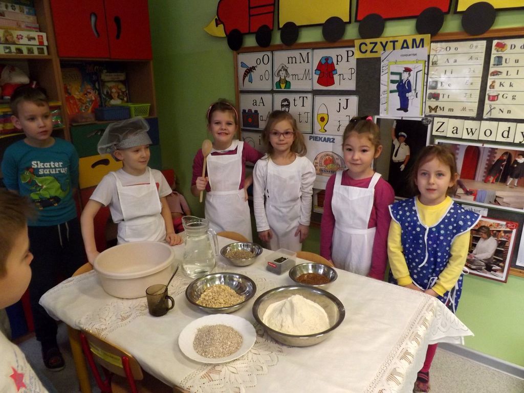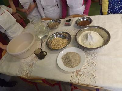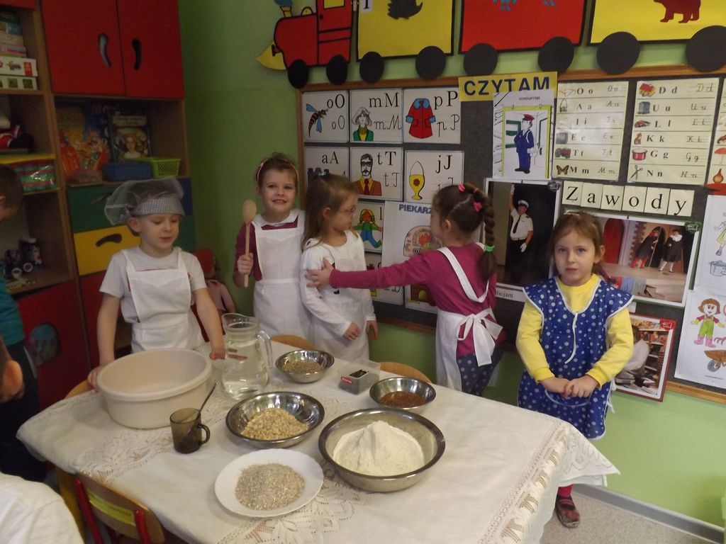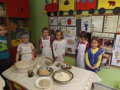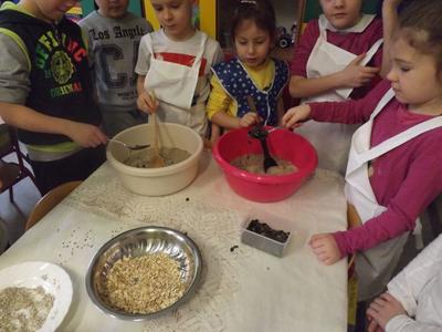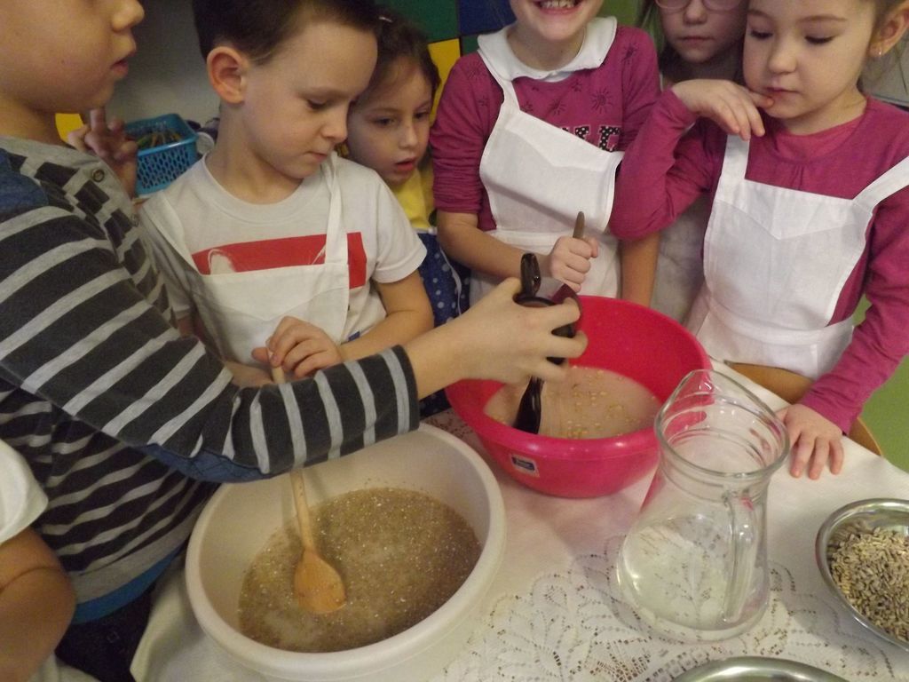 Przedszkolaki wciąż uczą się, jak należy dbać o zdrowie. Grupa 6-latków na zajęciach piekła zdrowy chleb z ziarnami. Rodzice zapewnili składniki, a mali piekarze z radością wyrabiali ciasto. Do degustowania swojskiego pieczywa została zaproszona grupa maluchów, która na ucztę przyniosła domowy dżem do posmarowania chleba.