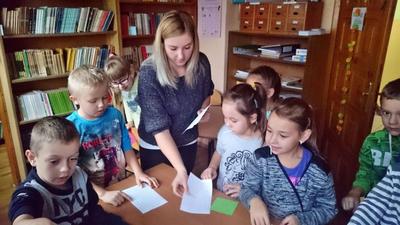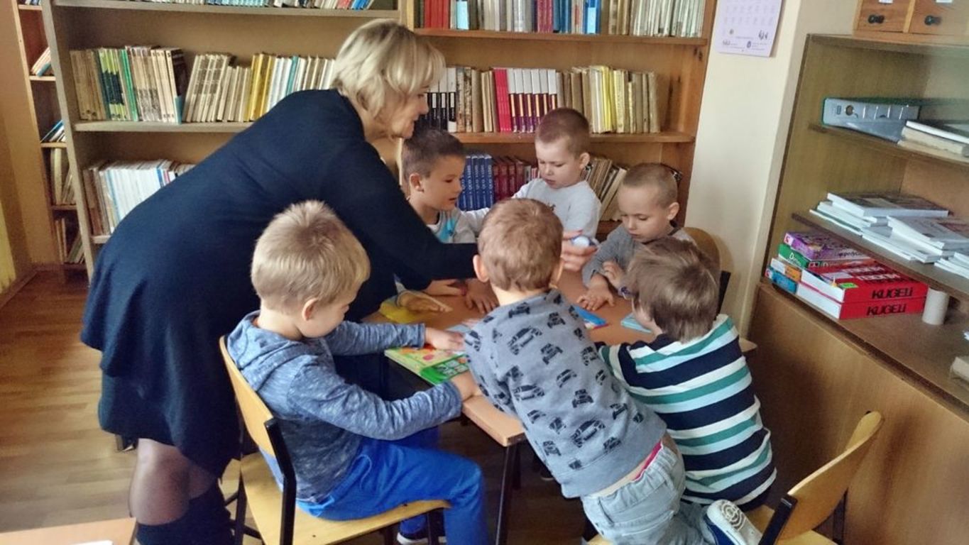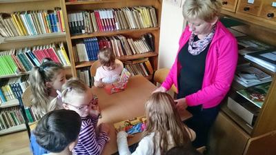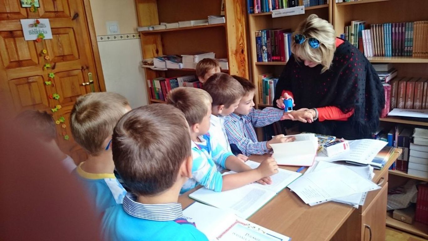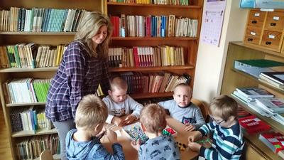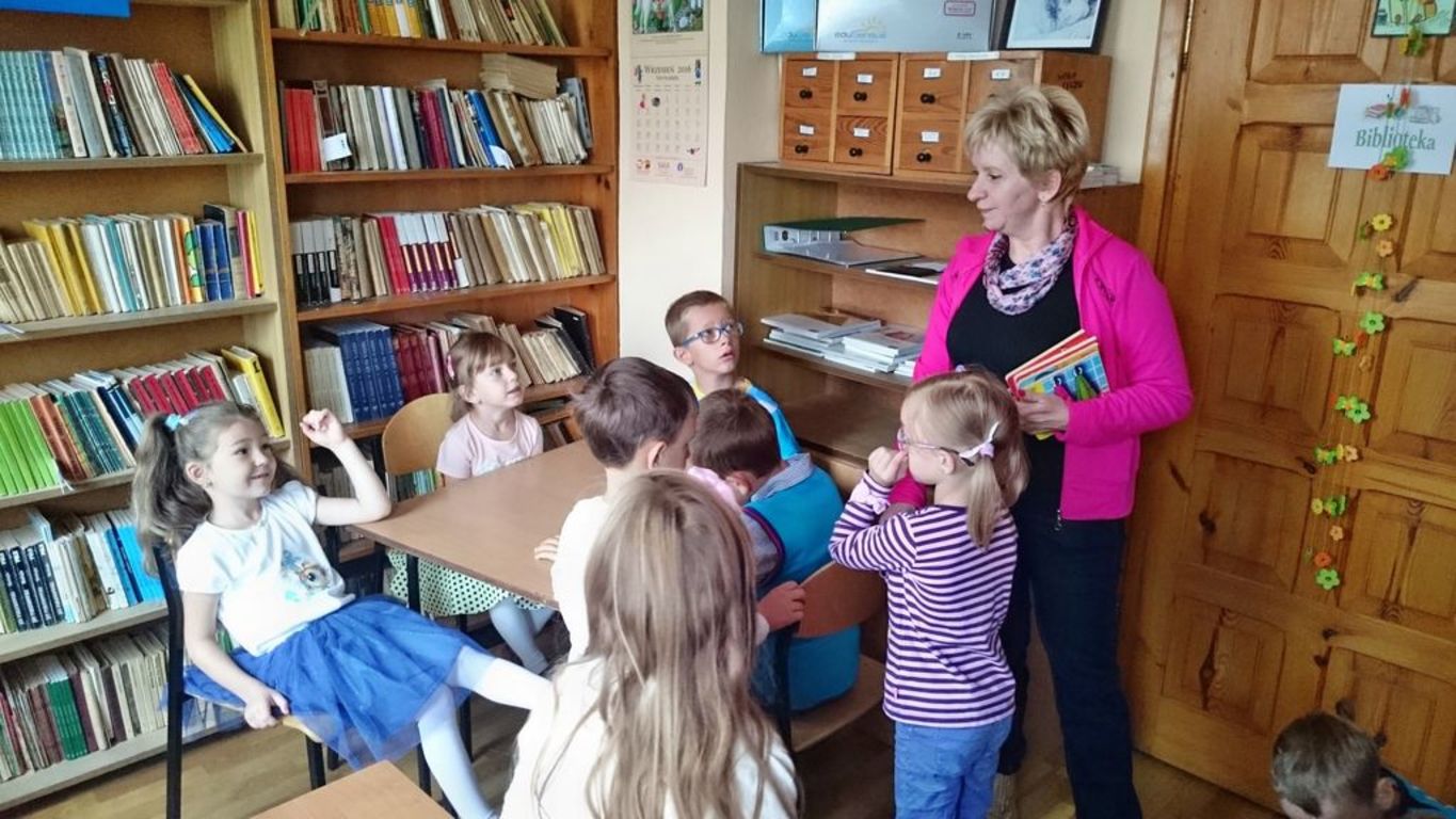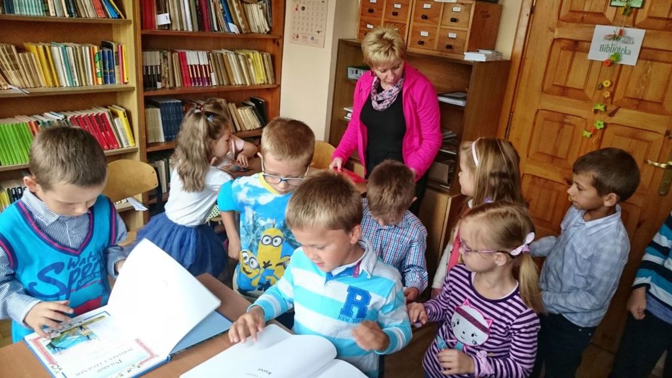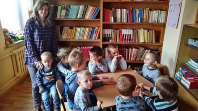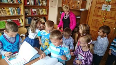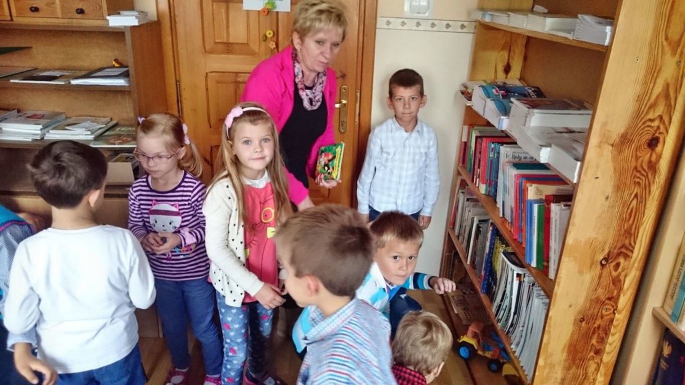 26 września 2016 r.  przedszkolaki  pod opieką pani ZUZANNY BARTOS wybrały się do biblioteki szkolnej. Pani Dorota pokazała dzieciom, gdzie znajduje się przeznaczony specjalnie dla nich regał z książkami. Następnie zaprezentowała i dała do obejrzenia dzieciom najmniejsze książeczki z działu dziecięcego. Przedszkolakom bardzo spodobały się kolorowe i bogato ilustrowane książeczki, które z chęcią oglądały. Spotkanie odbywało się w miłej, pełnej uśmiechów i wrażeń atmosferze. Dla wielu przedszkolaków, była to pierwsza wizyta w „domu książek”, ale na pewno nie ostatnia. Dzieci obiecały pani Dorocie, że niedługo znów ją odwiedzą.