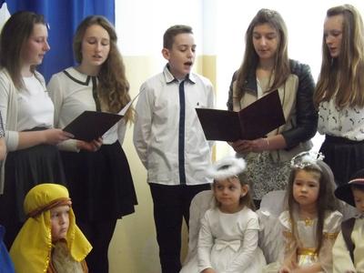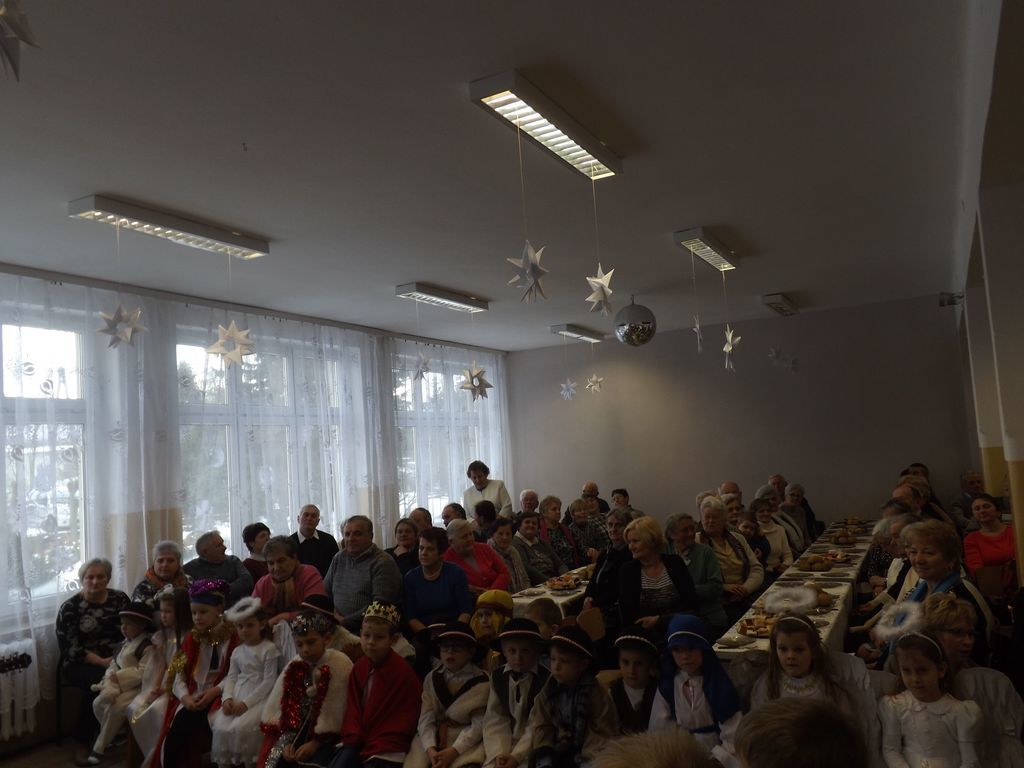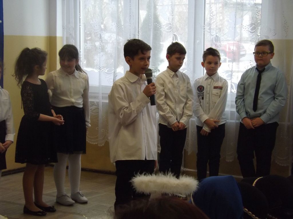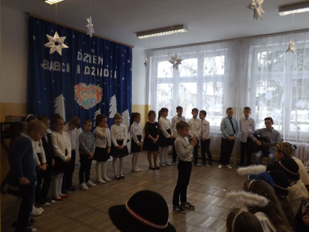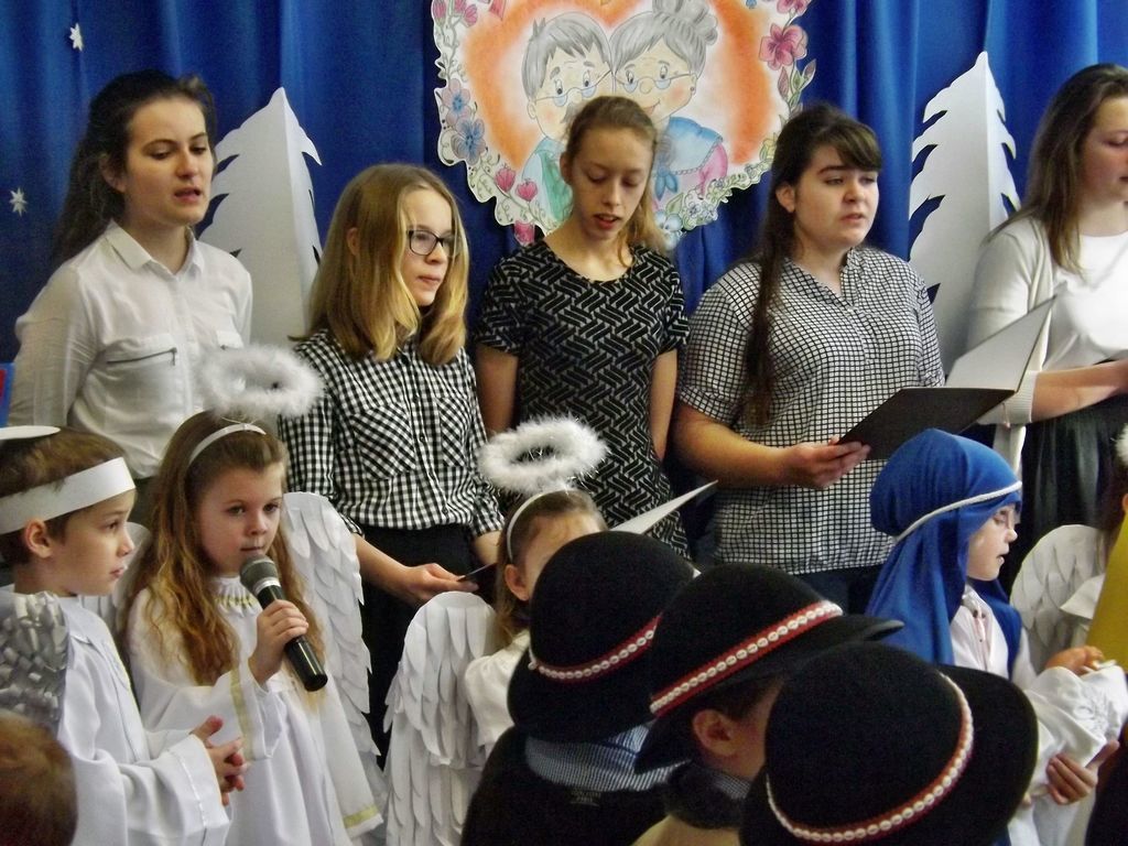 W dniu 13 stycznia w Zespole Szkół w Goleniowach odbyła się uroczystość z okazji Święta Babci i Dziadka. Babcia i Dziadek to bardzo ważne osoby w życiu każdego dziecka, dlatego w tym szczególnym dniu dzieci z przedszkola, zerówki oraz klasy II i III również pamiętały o swoich Babciach i Dziadkach i wspólnie ze swoimi paniami przygotowały dla nich przedstawienie. Licznie przybyli goście zasiedli przy przygotowanych dla nich stołach i z niecierpliwością czekali na rozpoczęcie występu swoich wnucząt. Wszystkich gości ciepłymi słowami przywitała Pani Dyrektor Bożena Haras-Wontorska. Na twarzach dzieci widać było ogromną radość oraz skupienie. Dzieci zaprezentowały swój program artystyczny, a następnie wręczyły własnoręcznie wykonane prezenty dla swoich ukochanych Babć i Dziadków. Występ rozpoczęły dzieci z przedszkola oraz zerówki a były to pięknie przygotowane Jasełka. Uczniowie w specjalnie przygotowanych kostiumach oraz w pięknej scenografii nawiązującej do Betlejem, przedstawili sceny narodzin Chrystusa. Mali aktorzy z dużym przejęciem i poświęceniem wiernie odtworzyli swoje role. Przygotowania do przedstawienia trwały ok. miesiąca. Uczniowie poświęcili wiele czasu na próby i przygotowania, tym bardziej, że poza nauką tekstu, uczyli się też śpiewać, by w pełni oddać radość z Narodzenia Pana. Całość przedstawienia została przygotowana pod kierunkiem p. Zuzanny Bartos, p. Beaty Żak, p. Eweliny Kapłon oraz nauczyciela religii ks. Marcina Wróbla, który przygrywał dzieciom na gitarze. Po wystąpieniu przedszkolaków, uczniowie kl. II i III przedstawili swoją część artystyczną, recytując piękne wiersze, które były jednocześnie życzeniami dla wszystkich Babć i Dziadków zebranych na sali. Uczniów przygotowały p. Ilona Kostecka i p. Justyna Dudek. Wszyscy z dumą patrzyli na swoje wnuczęta, które włożyły wiele wysiłku w to, aby jak najlepiej wyrazić swoją miłość i szacunek. Gościom towarzyszyły radość i uśmiech. Następnie dzieci wraz z Babciami oraz Dziadkami zostali zaproszeni na przygotowany z tej okazji słodki poczęstunek.