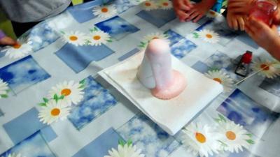 6-latki bardzo lubią eksperymentować. Ostatnim ich wyczynem było zrobienie wulkanu. Mimo nieprzyjemnego zapachu efekt był wspaniały.