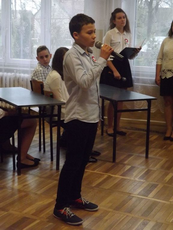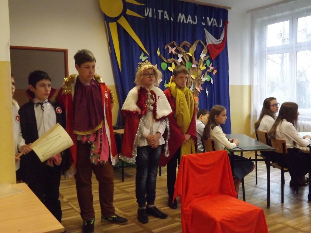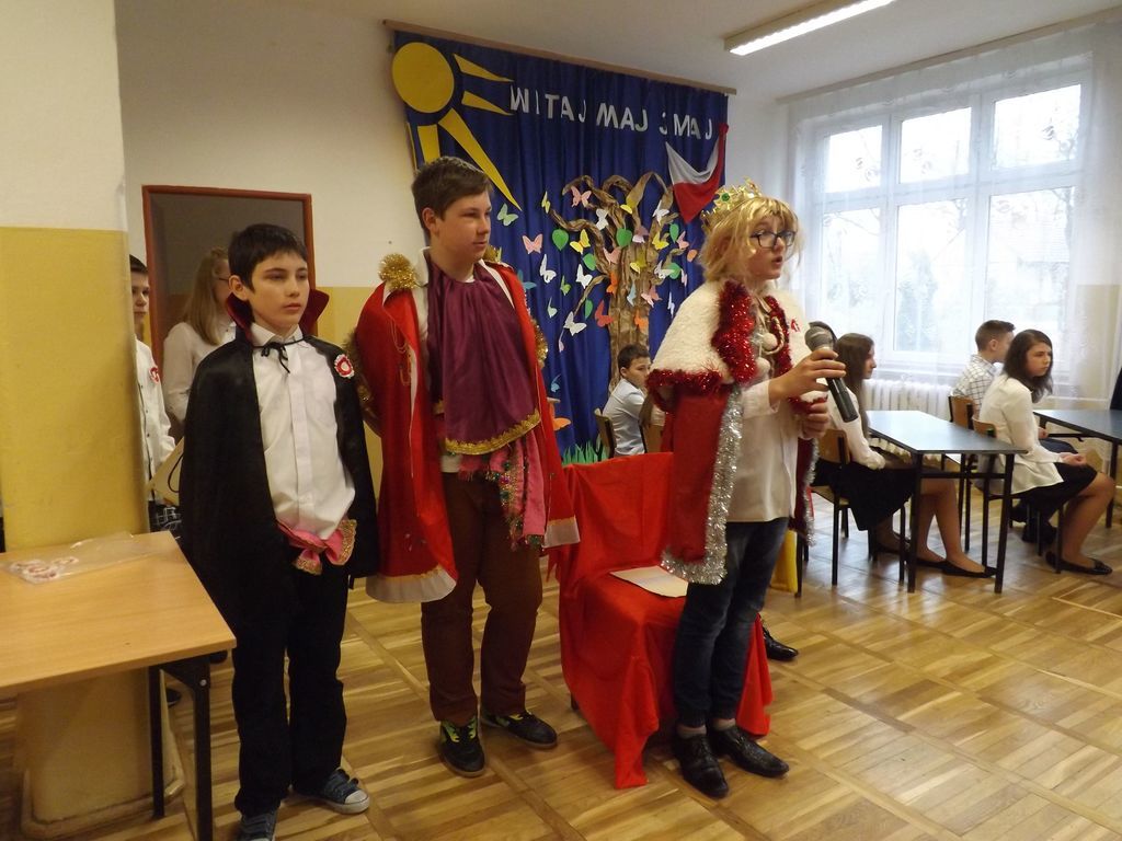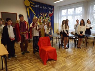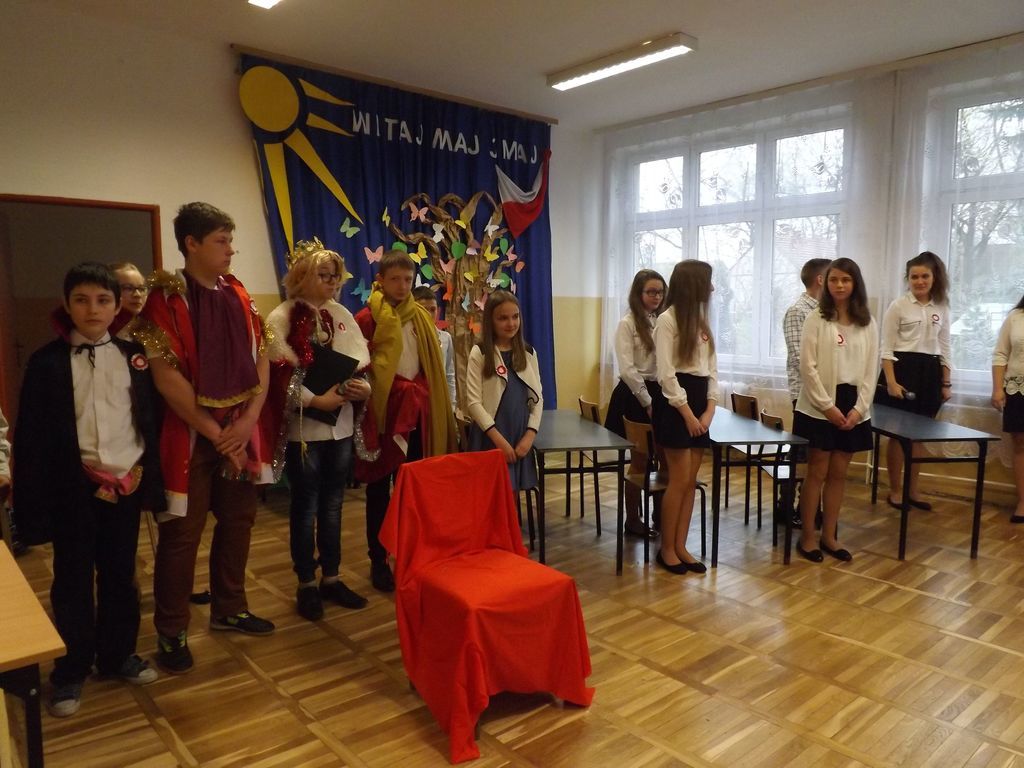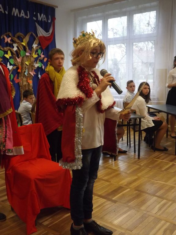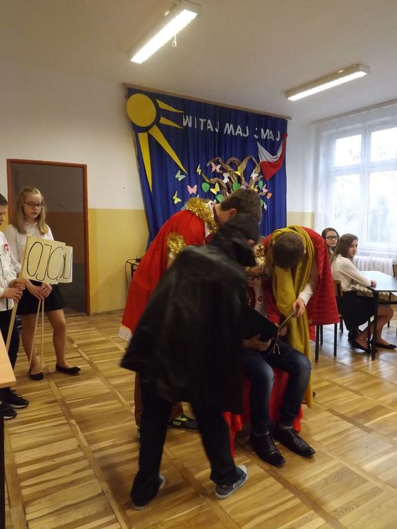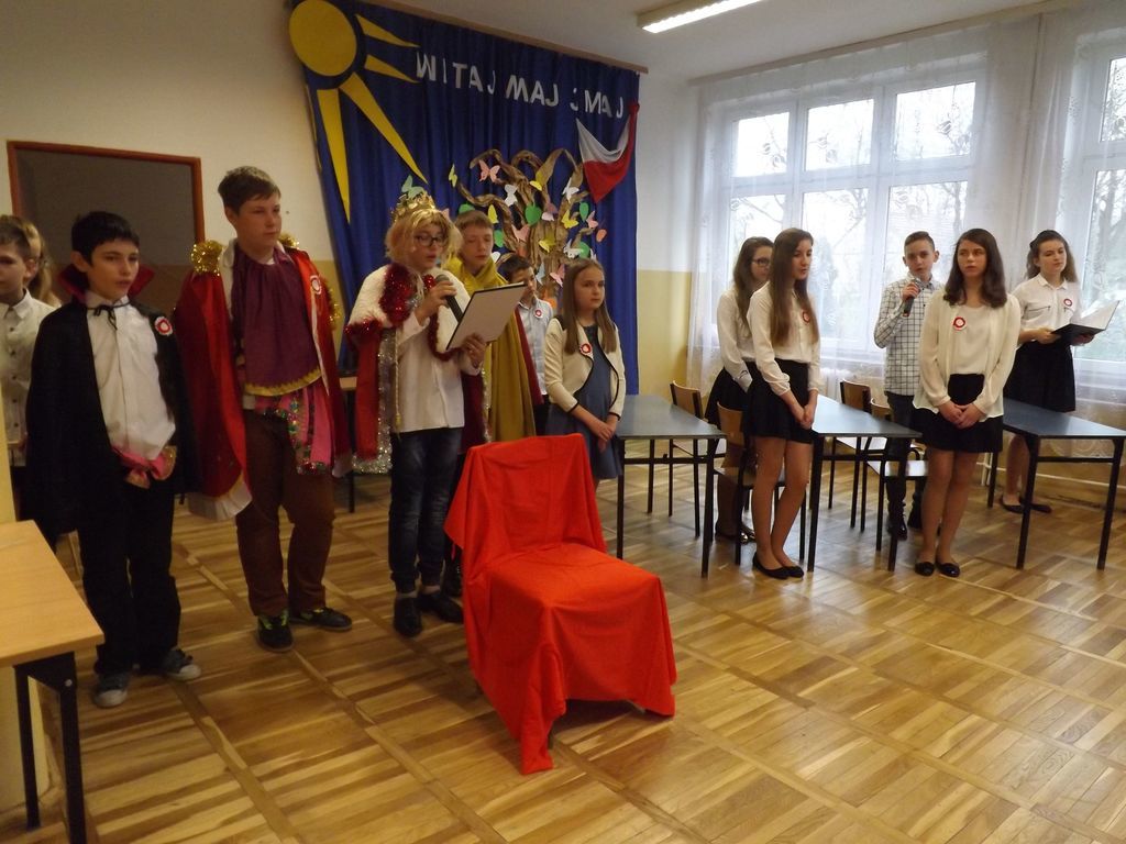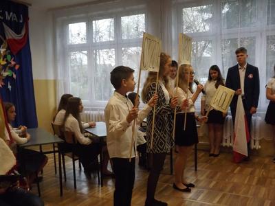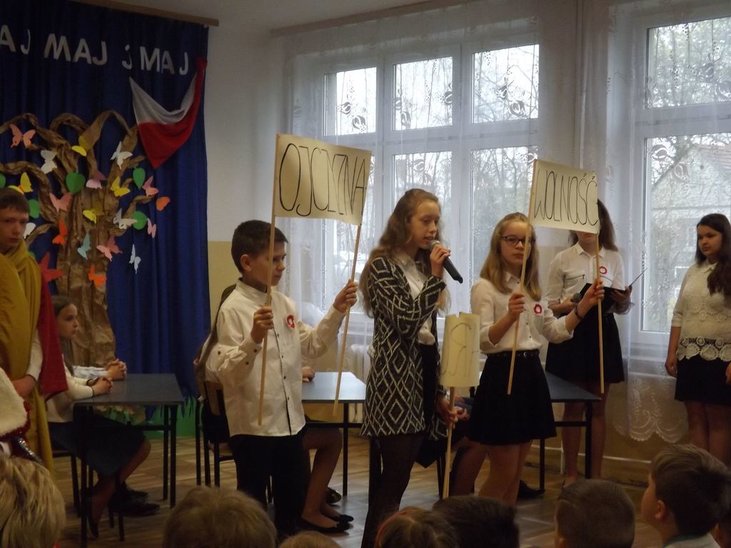 W tym roku podobnie jak w latach poprzednich w naszej szkole obchodziliśmy rocznicę uchwalenia Konstytucji 3 Maja. W dniu 28.04.2017r. z tej właśnie okazji odbyła się akademia przygotowana przez uczniów klasy VI , VSP i klasy I gimnazjum, która została przygotowana pod kierunkiem Pani Eweliny Rolek. Wykonawcy pragnęli uzmysłowić wszystkim, jak ważną rolę i znaczenie mają słowa: Ojczyzna, Naród i Wolność. Uczniowie zaprezentowali najważniejsze wydarzenia związane z obradami Sejmu Wielkiego i Konstytucją 3-Maja. Całość występu uświetnił śpiew piosenek o treści patriotycznej.