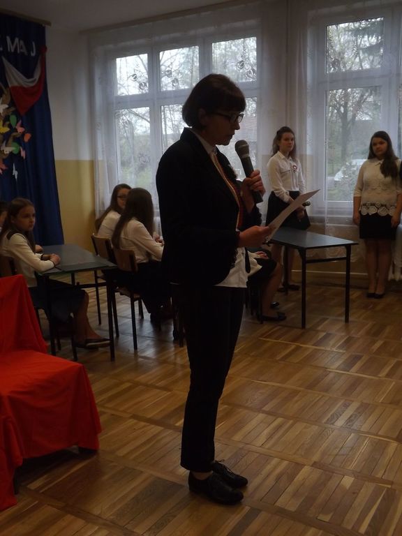 Wydarzenia związane z konstytucją 3 maja w pięknych słowach przytoczyła również pani Dyr. od spraw dydaktycznych Bożena Haras-Wontorska.