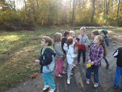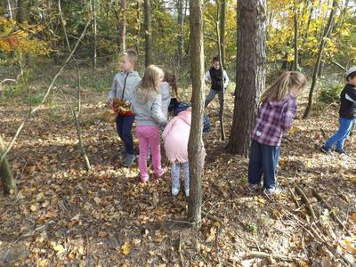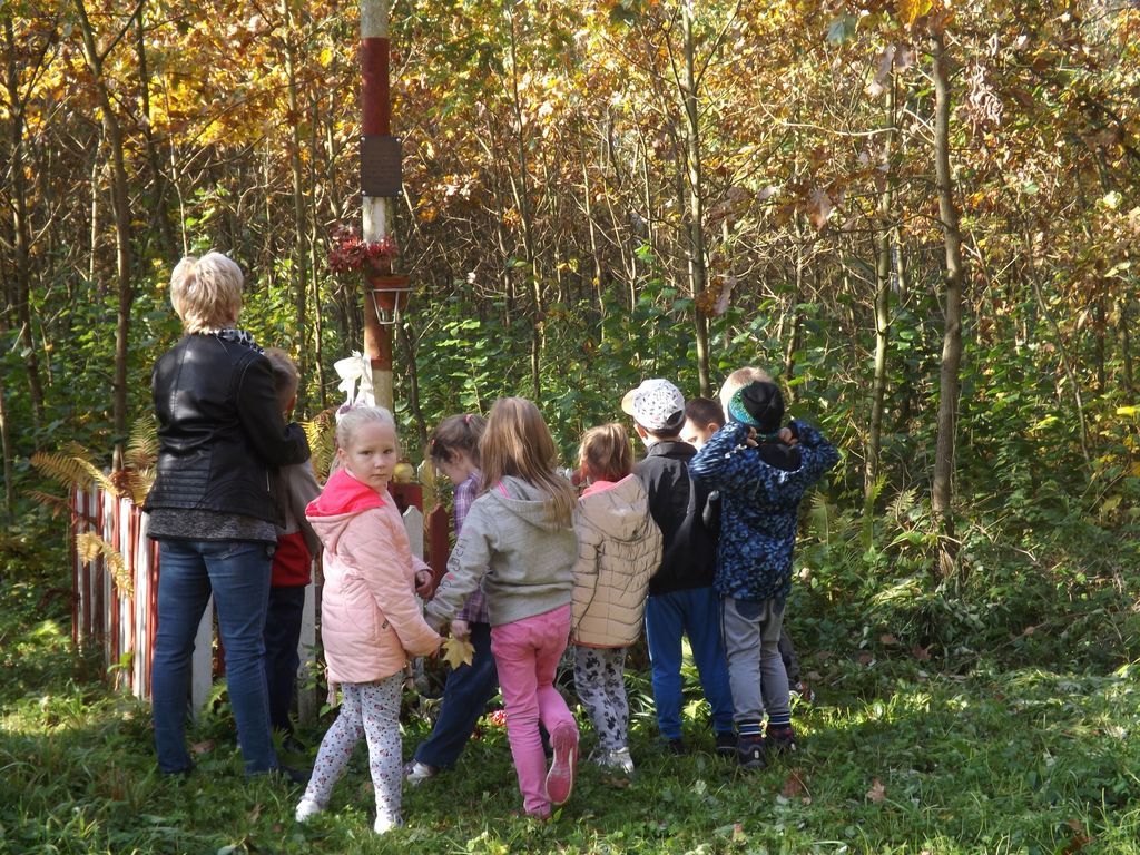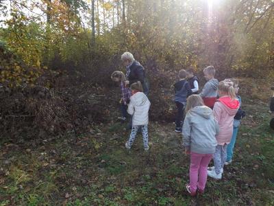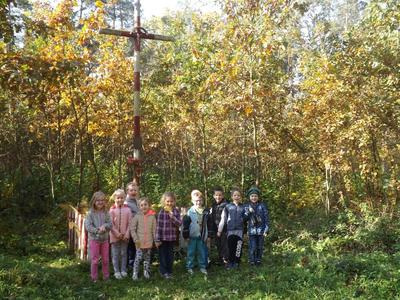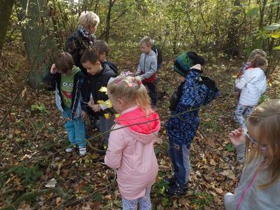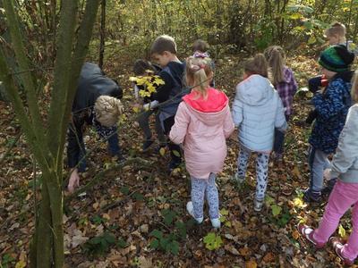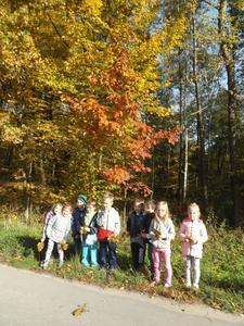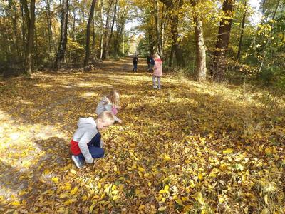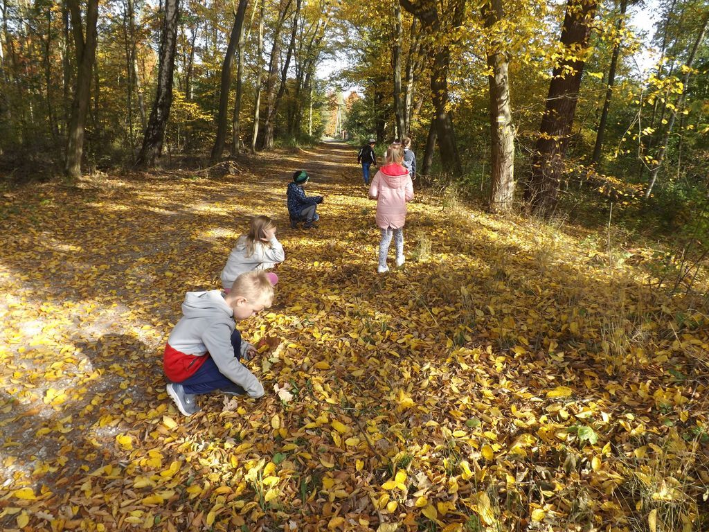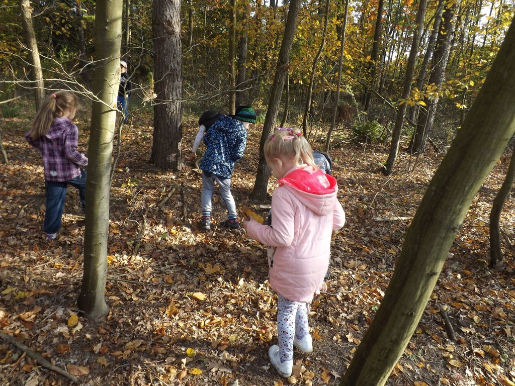 Dnia 17.10.2017 r. grupa „0” udała się na wycieczkę do lasu. Dzieci miały możliwość podziwiania piękna jesiennych barw, poznawania środowiska przyrodniczego jakim jest las. W bezpośrednim kontakcie z przyrodą rozpoznawały drzewa iglaste i liściaste. W dokładnym porównywaniu koron drzew i kształtu liści pomagała nam lornetka. Wycieczka udała się, wszyscy wrócili zadowoleni, a nasz kącik przyrodniczy wzbogacił się o dary przyniesione z lasu.