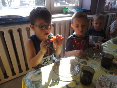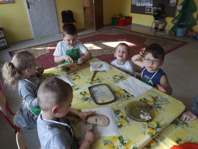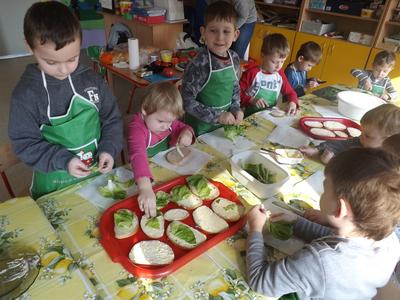 W ramach projektu „Żywienie na wagę Zdrowia” dzieci z grupy Smerfy i Krasnoludki przygotowały wiosenne kanapki.