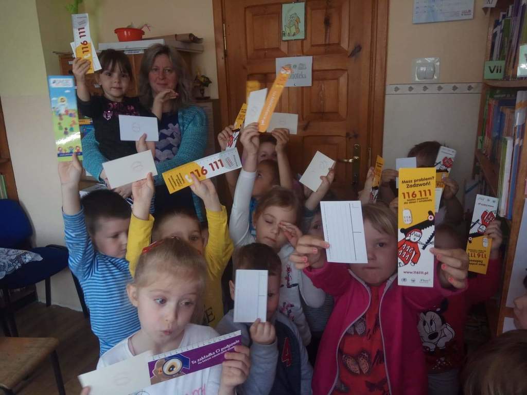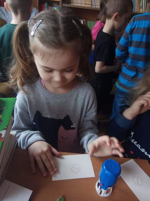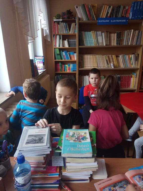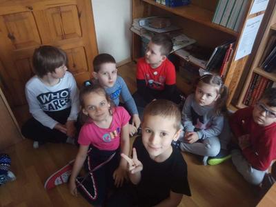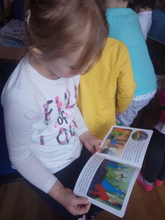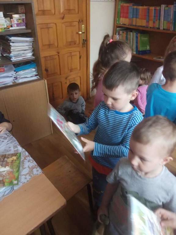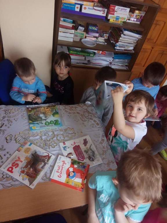 Dzieci z grup przedszkolnych wybrały się na wizytę do Biblioteki Szkolnej.
