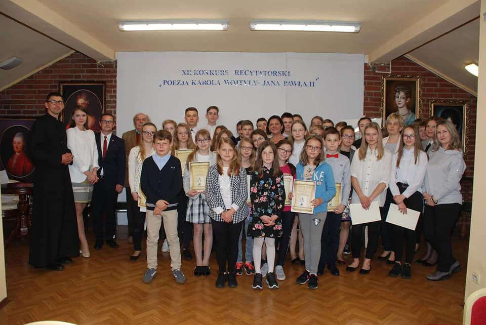 W dniu 29.05.2019r. uczniowie naszej szkoły wzięli udział w XII Konkursie Recytatorskim "Poezja Karola Wojtyły- Jana Pawła II" organizowanego przez Miejsko- Gminną Bibliotekę Publiczną w Szczekocinach i Zespól Szkół Społecznych im. Jana Pawła II w Rokitnie. Jak corocznie poziom konkursu był bardzo wysoki.