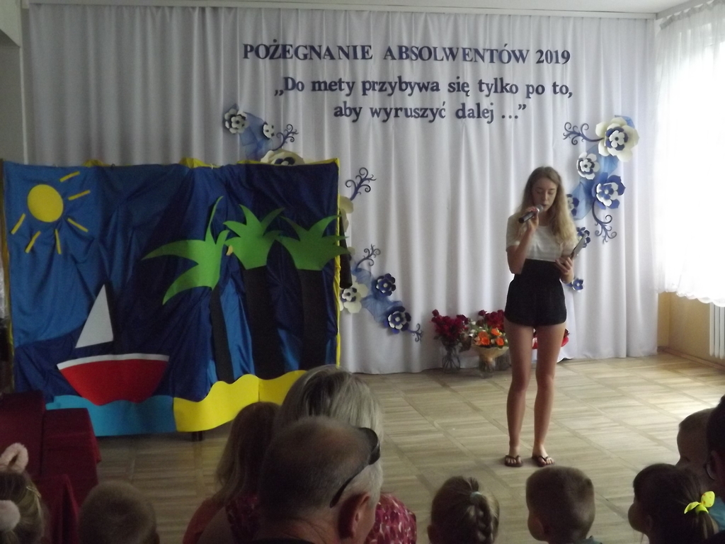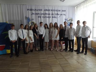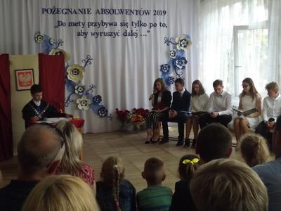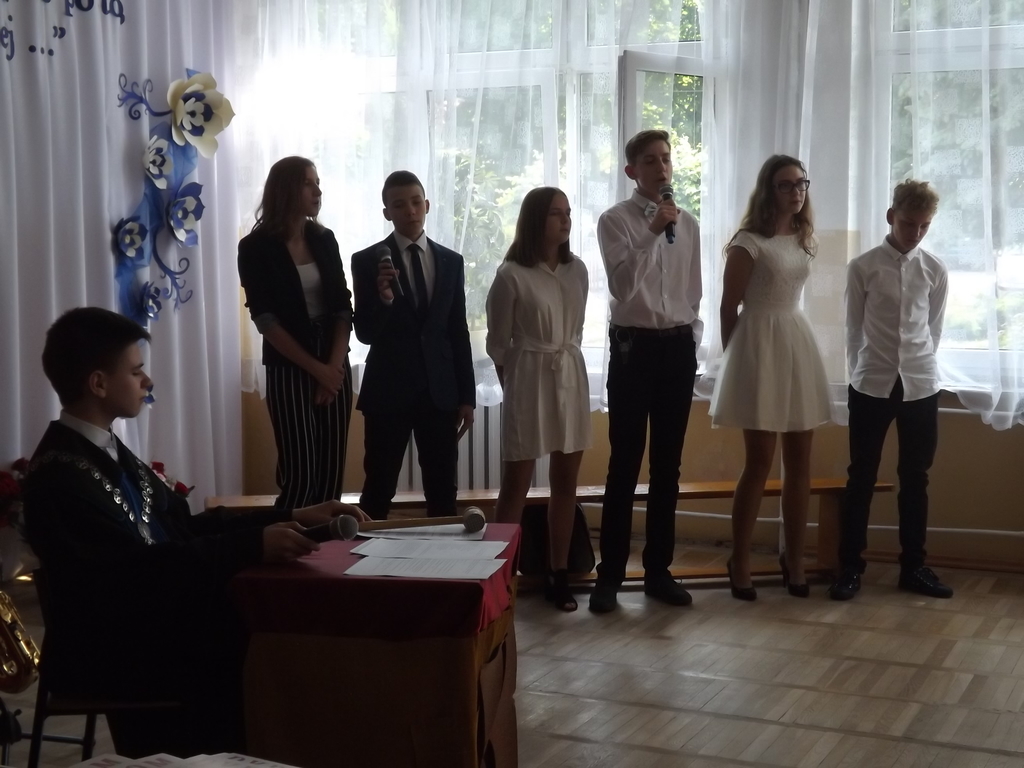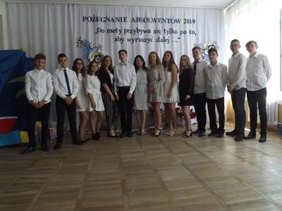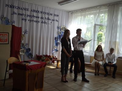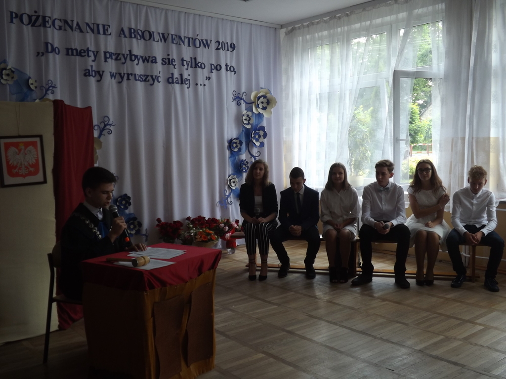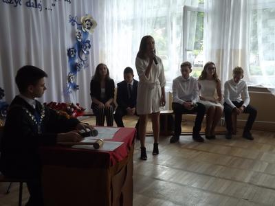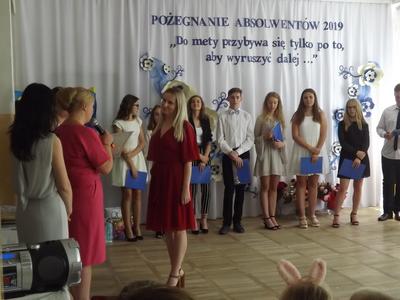 W dniu 18 czerwca 2019r w Zespole Szkół w Goleniowach odbyło się uroczyste zakończenie klas VIII i III gimnazjum. Była to ważna uroczystość i ogromne przeżycie dla naszych absolwentów ich rodziców, nauczycieli oraz całej społeczności szkolnej. Uroczystość rozpoczęła Pani Dyrektor Katarzyna Ćwiklińska, która powitała wszystkich zaproszonych gości w tym Pana Burmistrza MiG Szczekociny Jacka Lipę. Następnie Pani Dyrektor do Spraw Pedagogicznych Bożena Haras-Wontorska w swoim przemówieniu podsumowała okres, który nasi absolwenci spędzili w murach szkoły. Zwróciła uwagę na ich zaangażowanie w życie szkoły oraz życzyła wielu sukcesów na nowym etapie życia. Drogowskazem dla uczniów były słowa Pani Dyrektor, aby zawsze pozostali sobą, oraz by pielęgnowali wartości moralne, które ukształtowali w sobie dotychczas.