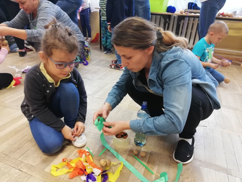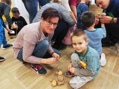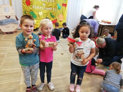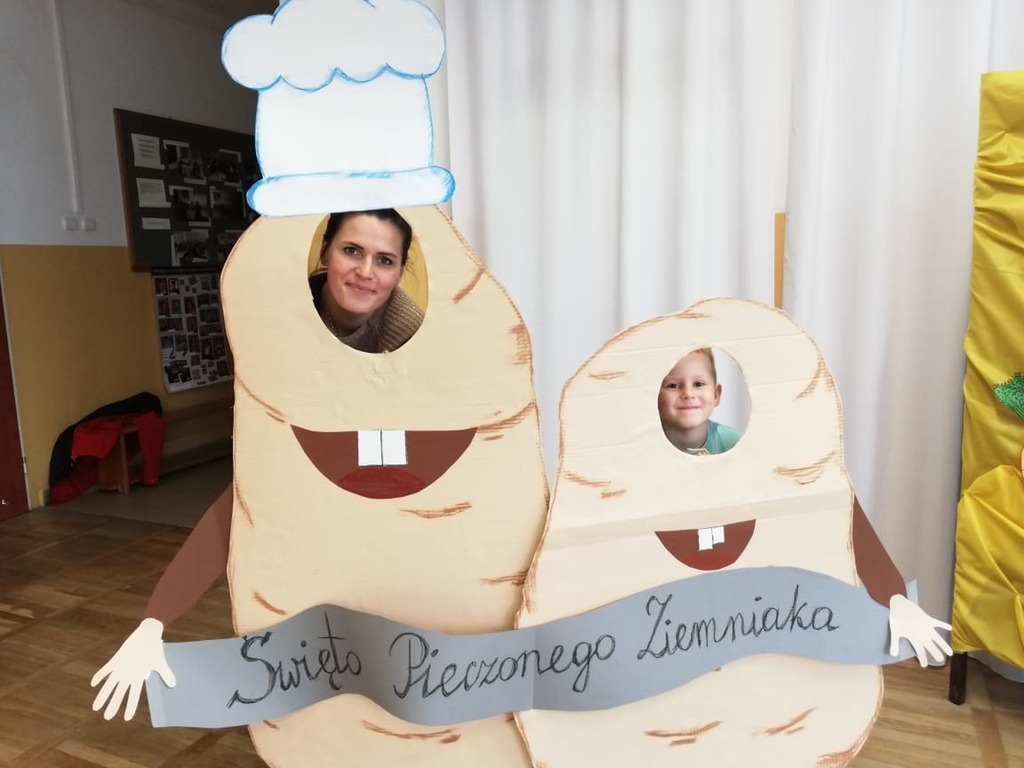 W naszym przedszkolu tradycyjnie obchodzone jest Święto Pieczonego Ziemniaka. Tegoroczna impreza integrująca dzieci, ich rodziny i cały personel przedszkola odbyła się 8 października 2019r. Impreza przygotowana była przez pracowników przedszkola przy współudziale rodziców, którzy dostarczyli nie tylko okazy ziemniaków ale też przygotowali pyszne pieczonki. Nad udanym przebiegiem uroczystości czuwały organizatorki: