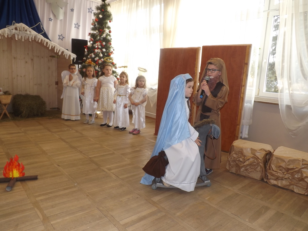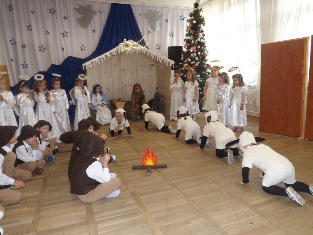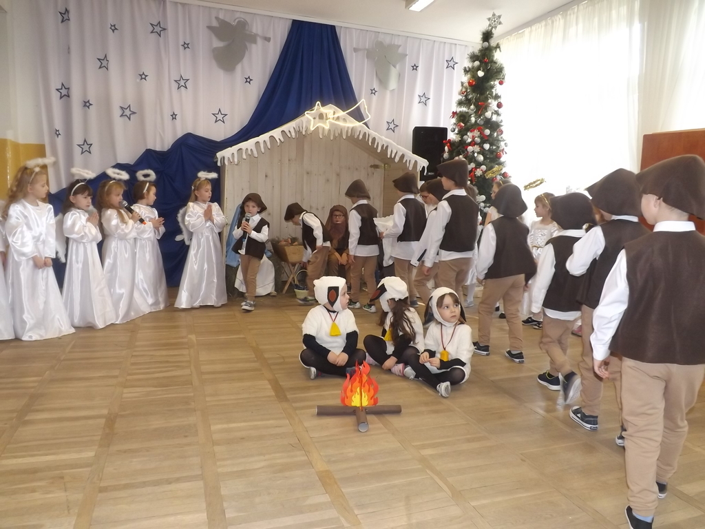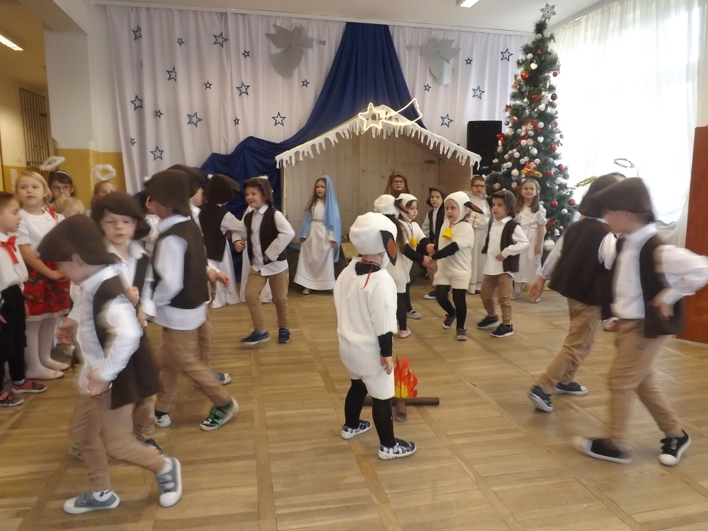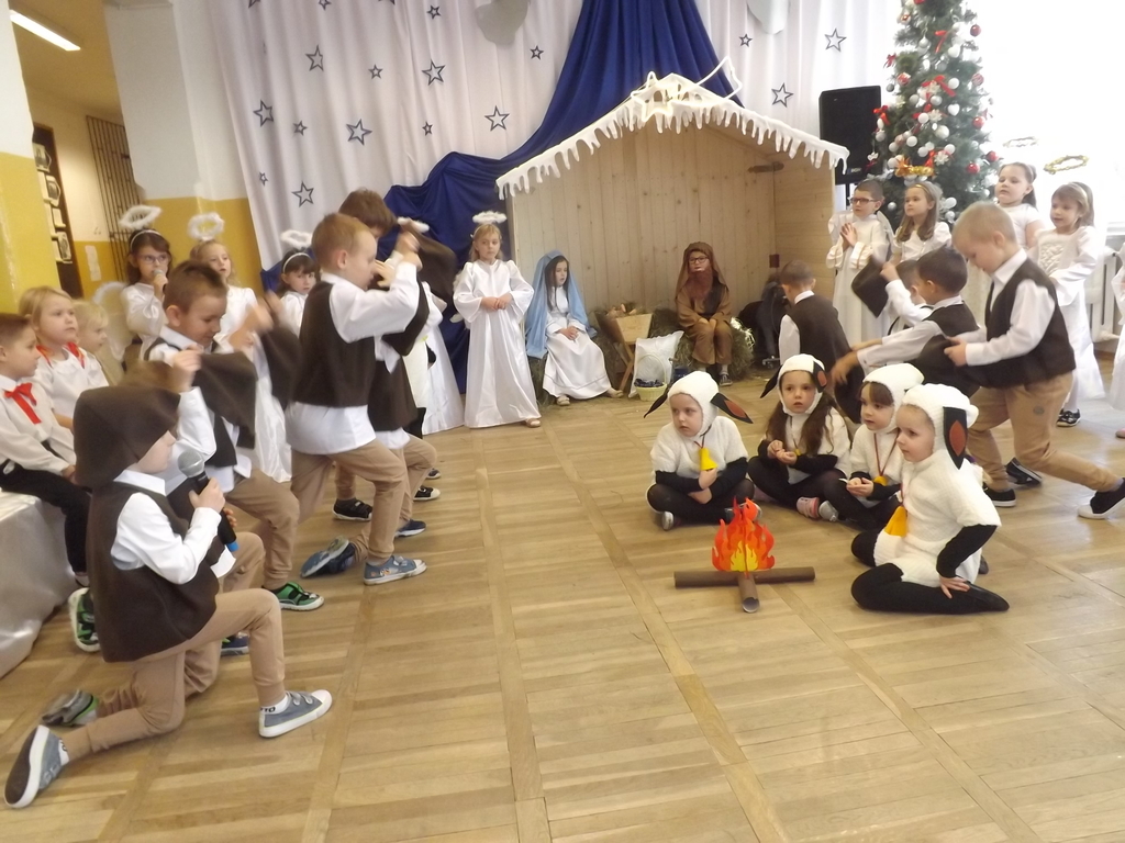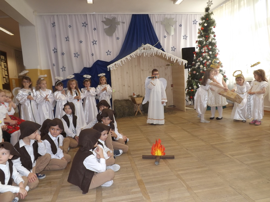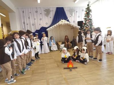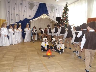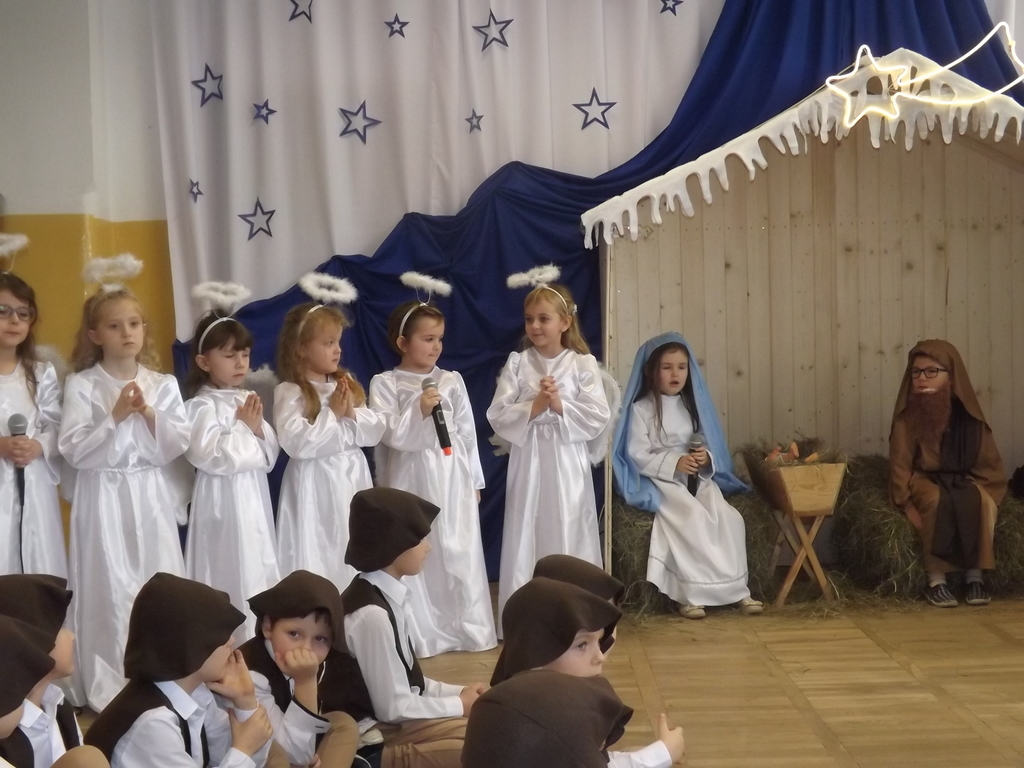 Z okazji nadchodzących Świąt Bożego Narodzenia, 20 grudnia w naszej szkole wystawione zostały jasełka, tradycyjnie w wykonaniu najmłodszych. Mali aktorzy prezentowali się wspaniale na tle bożonarodzeniowej dekoracji wykonanej przez Panie z grup przedszkolnych. Wszyscy zgromadzeni goście ulegli magii występów przedszkolaków. Artyści z ogromnym przejęciem i zaangażowaniem wiernie odtwarzali swoje role, prezentując umiejętności aktorskie i wokalne. Scenariusz jasełek zawierał najważniejsze wydarzenia towarzyszące narodzinom Jezusa. Na koniec mali aktorzy nagrodzeni zostali gromkimi brawami. Po przedstawieniu wszyscy zgromadzeni udali się na uroczystą wigilię szkolną, gdzie łamiąc się opłatkiem składali sobie nawzajem serdeczne życzenia.