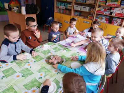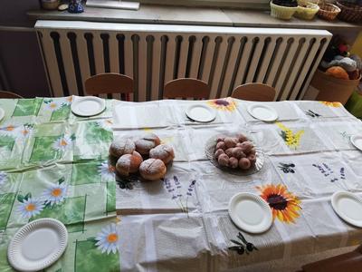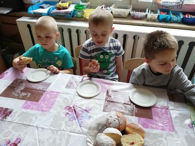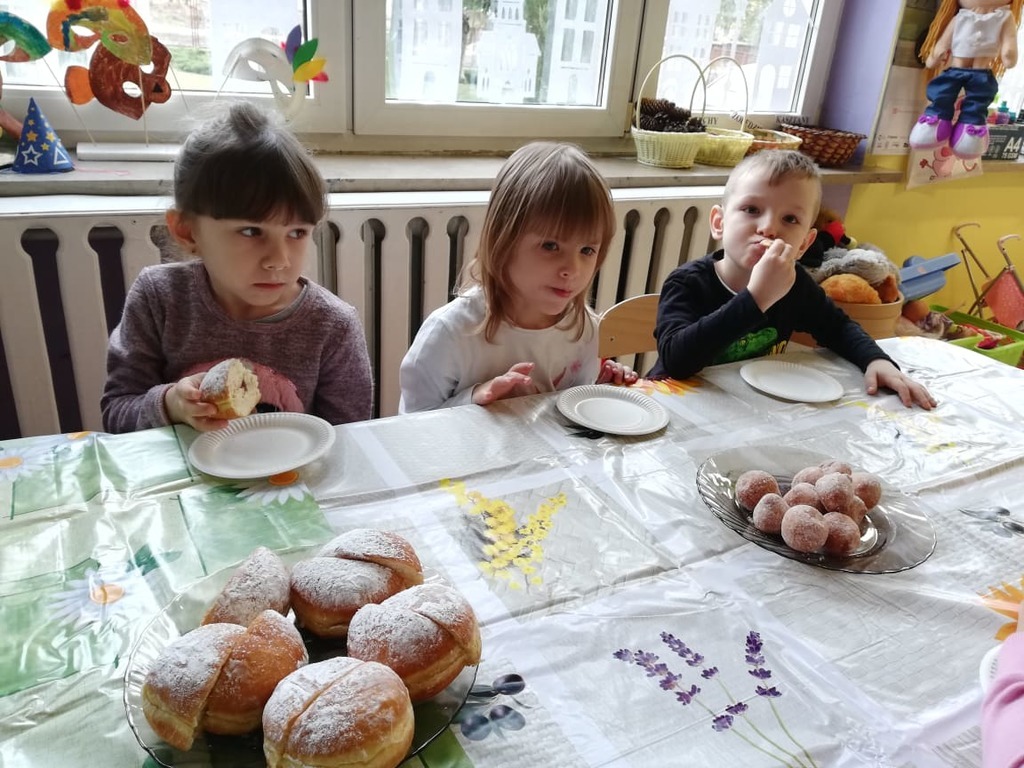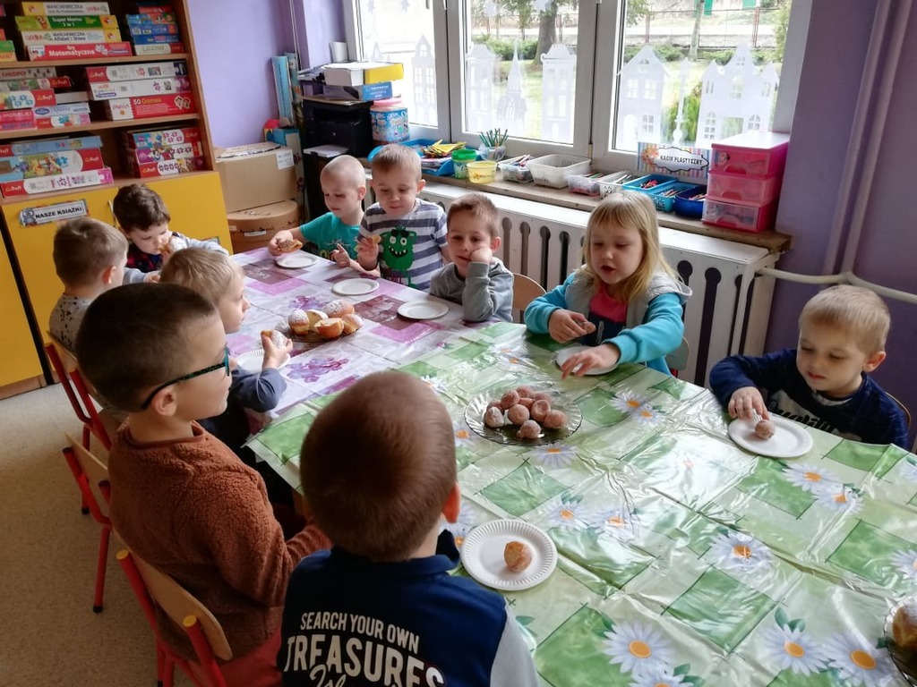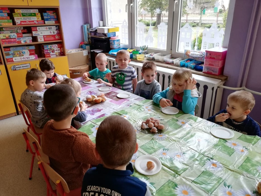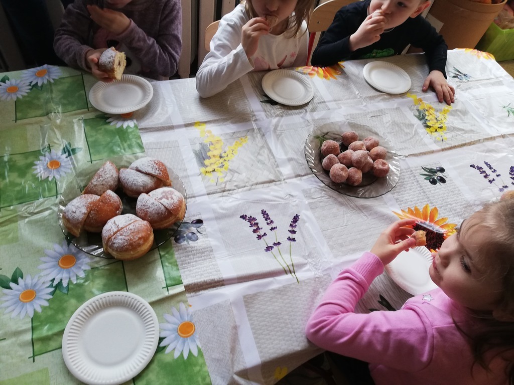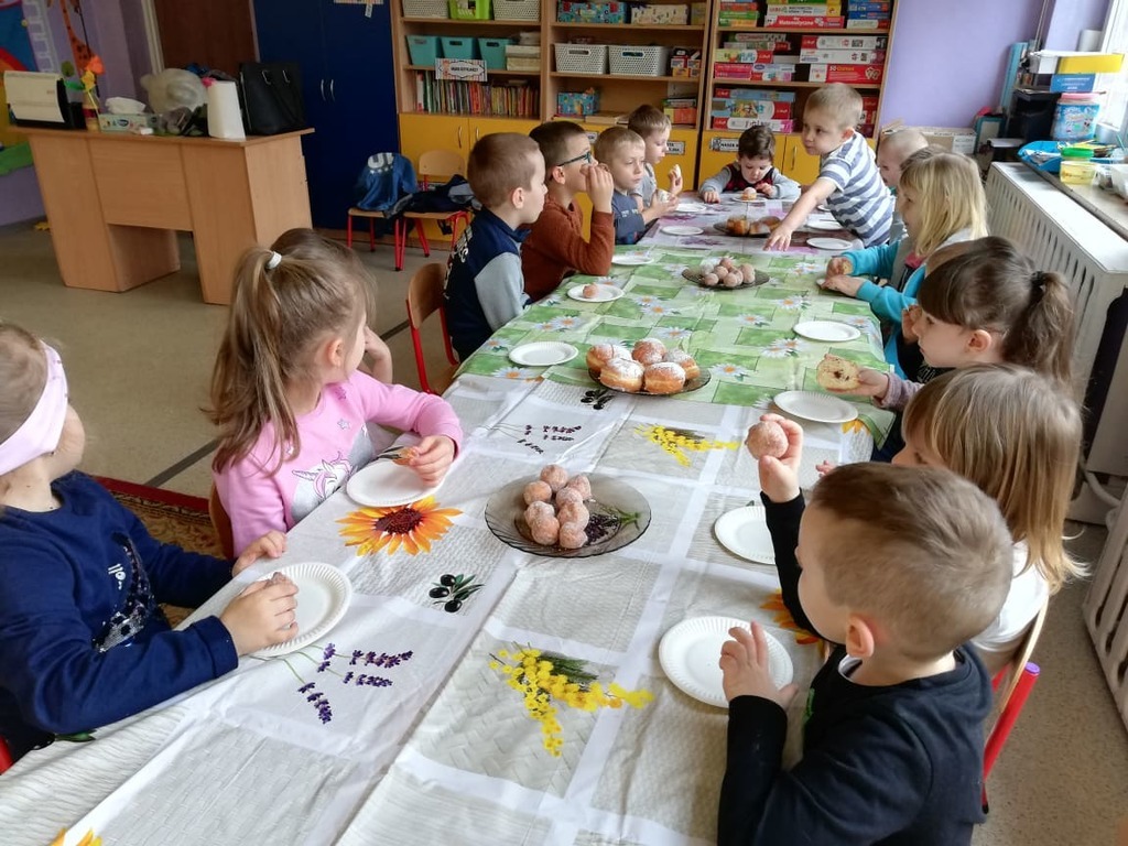 Tłusty czwartek – staropolska tradycja Pączki, pączki, pączki…. 20 lutego obchodziliśmy w naszym Przedszkolu tłusty czwartek. Dzieci poznały krótką tradycję tego święta według powiedzenia : „Powiedział nam Bartek, że dziś tłusty czwartek, a Bartkowa uwierzyła, smacznych pączków nasmażyła” według dawnych przesądów mówiono, że „Jeśli ktoś w tłusty czwartek nie zje ani jednego pączka, to w życiu nie będzie mu się wiodło”. Tradycja spełnia ważną i pożyteczną rolę zwłaszcza w rozwoju dziecka. Dlatego trzeba ją pielęgnować, ponieważ jej zanik zuboża nasze dziedzictwo kulturowe.