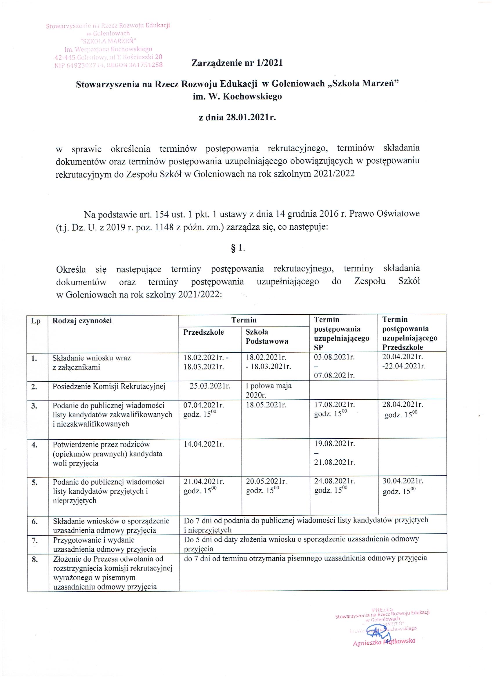 Dyrektor Zespołu Szkół w Goleniowach ogłasza nabór dzieci do przedszkola i I klasy szkoły podstawowej w Zespole Szkół w Goleniowach na rok szkolny 2021/2022.