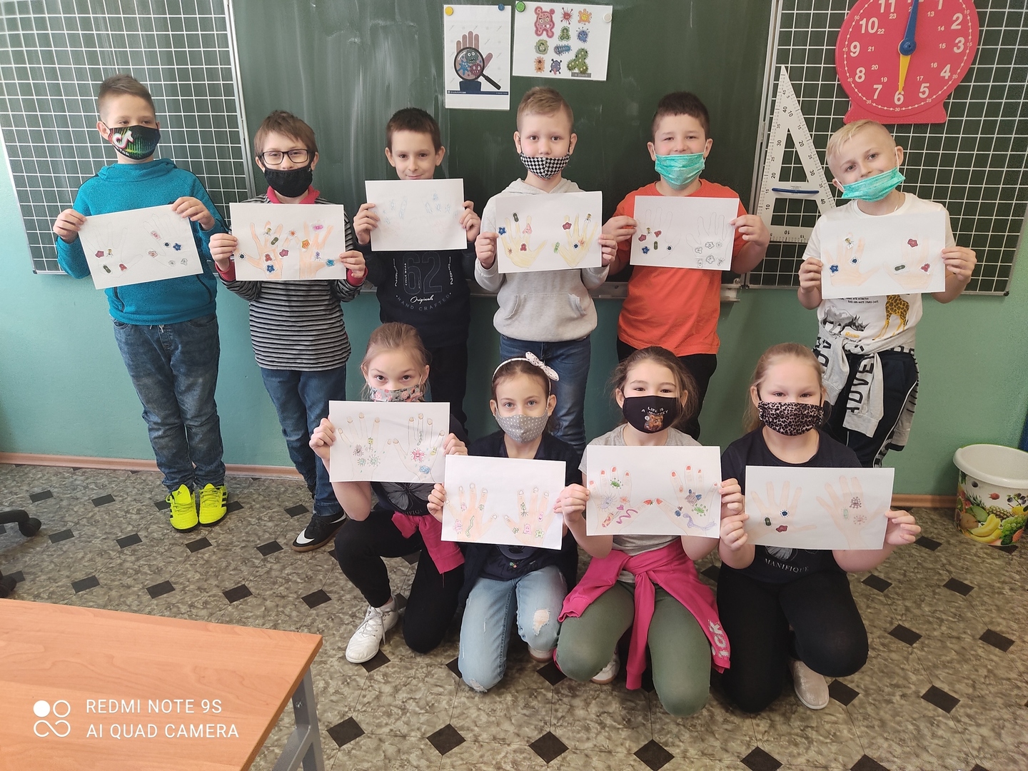 W lutym przedszkolaki oraz uczniowie klas I – III wzięły udział w zajęciach #lekcjaHIGIENY - akcji informacyjno – edukacyjnej pt. „Wirusoochrona”.
