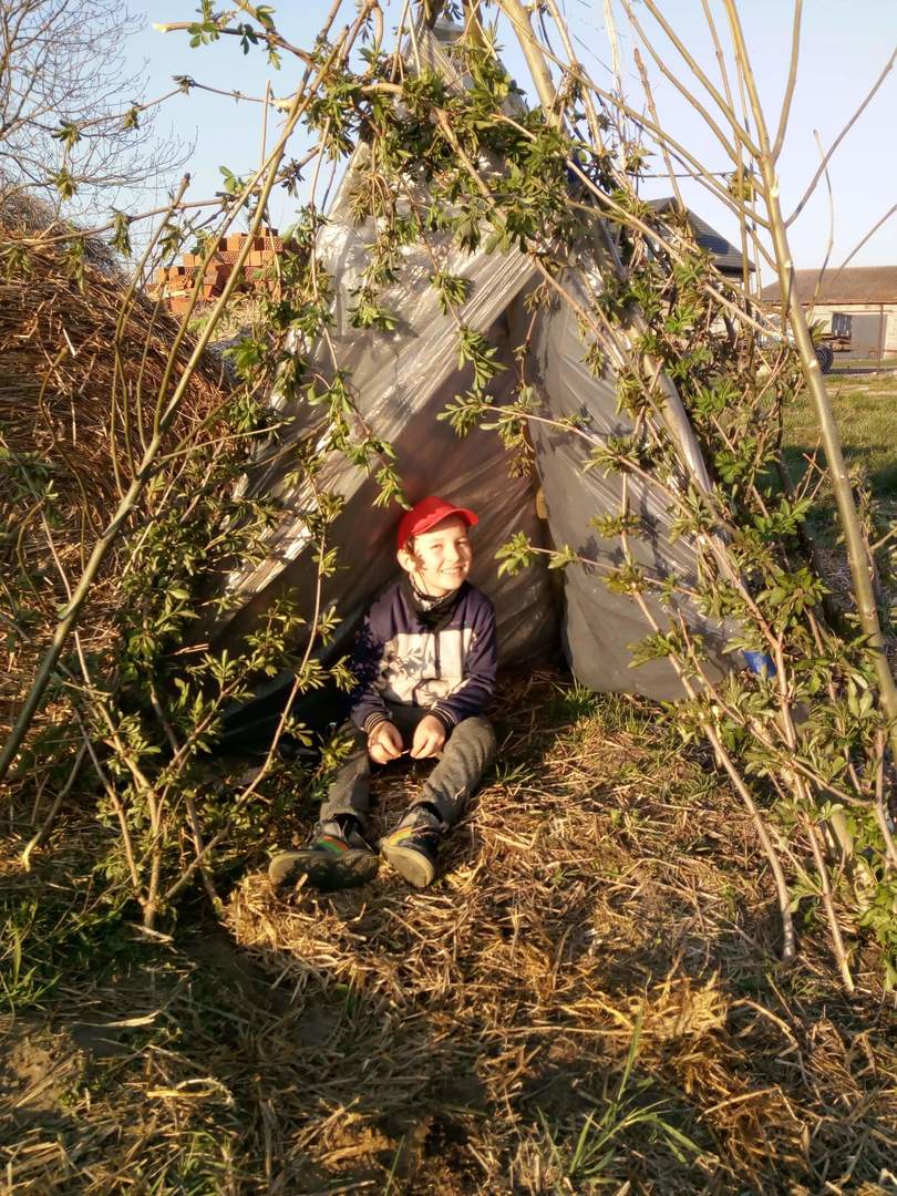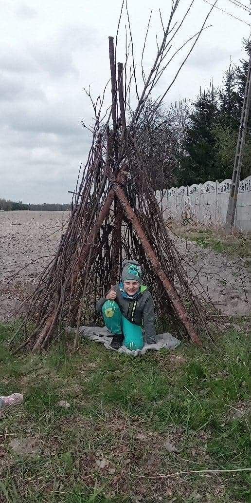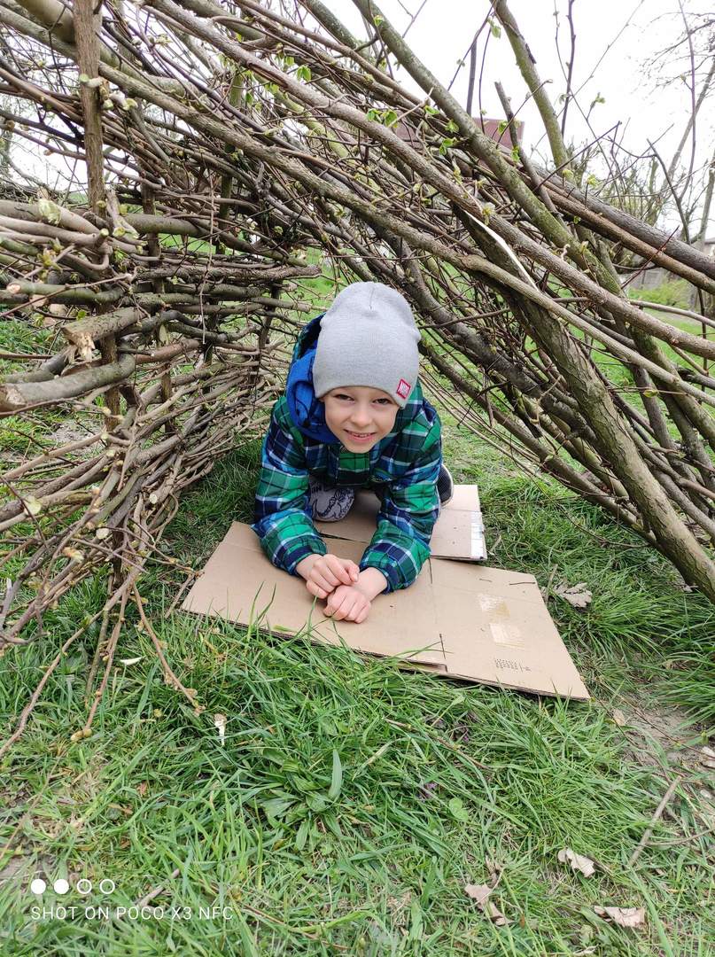 Uczniowie klasy I w czasie nauki zdalnej, postanowili wykorzystać pierwsze promyki słońca na świeżym powietrzu i wykonali z pomocą rodziców szałasy. Kreatywność i dobra zabawa towarzyszą naszym pierwszakom już od najmłodszych lat.