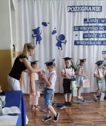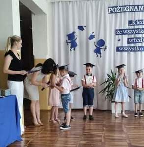 Zwieńczeniem pożegnalnej uroczystości było rozdanie dzieciom pamiątkowych dyplomów, nagród książkowych, a także niespodzianek przygotowanych przez opiekunów grup.