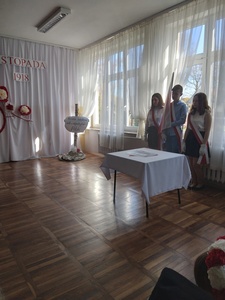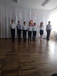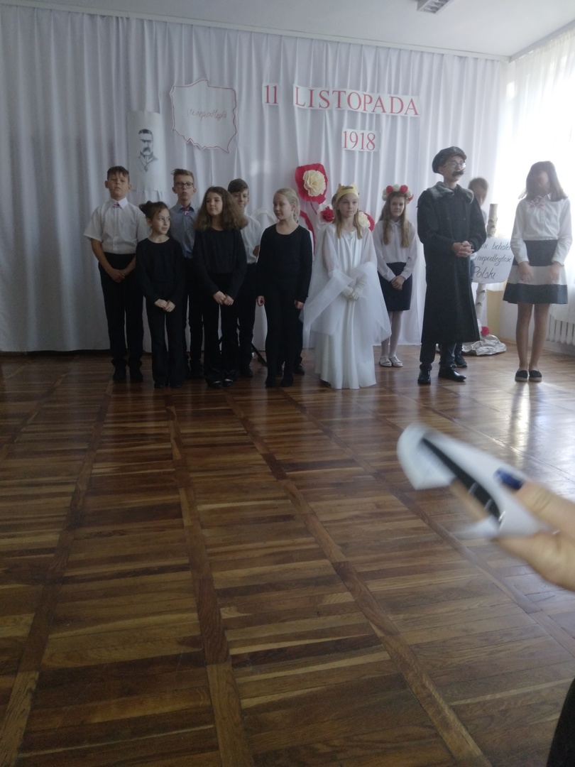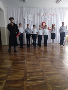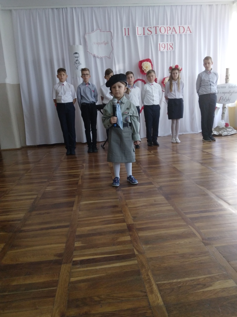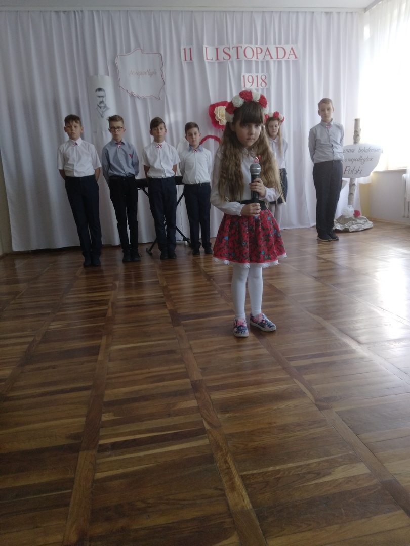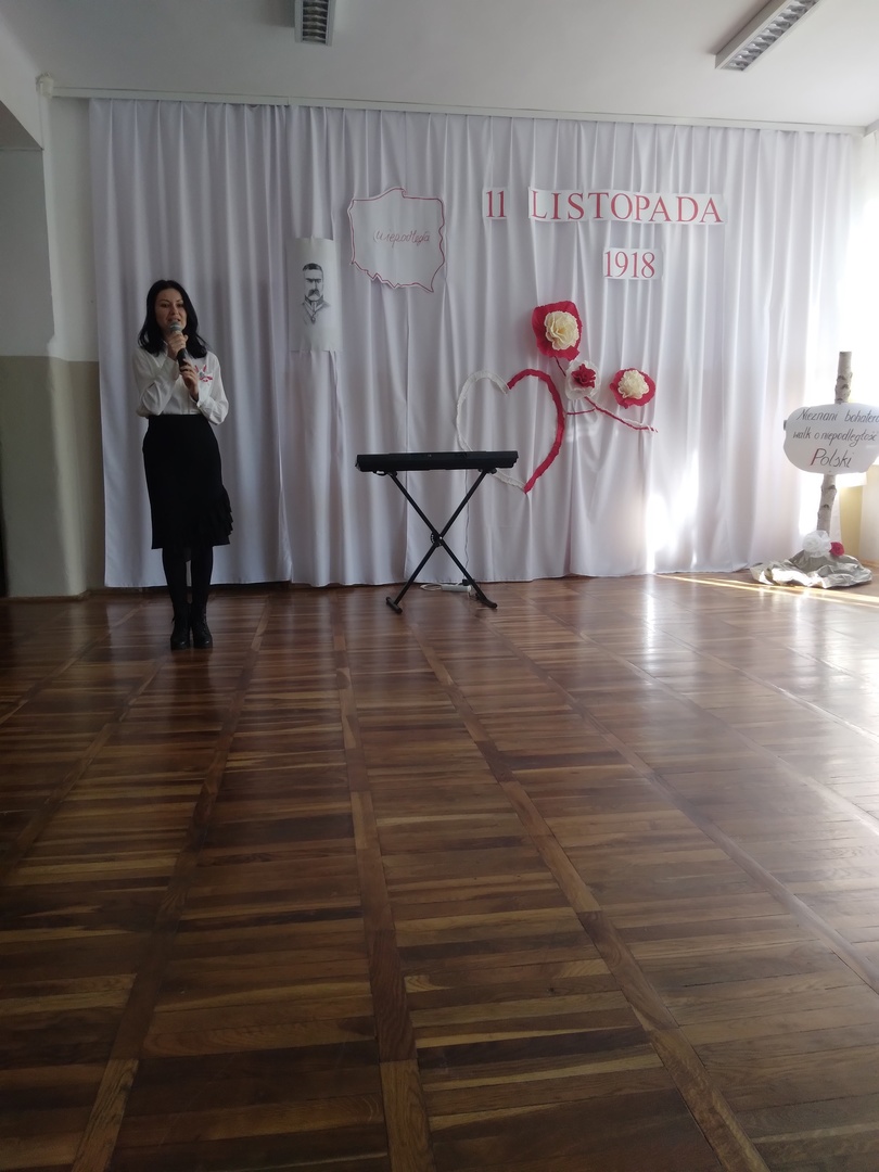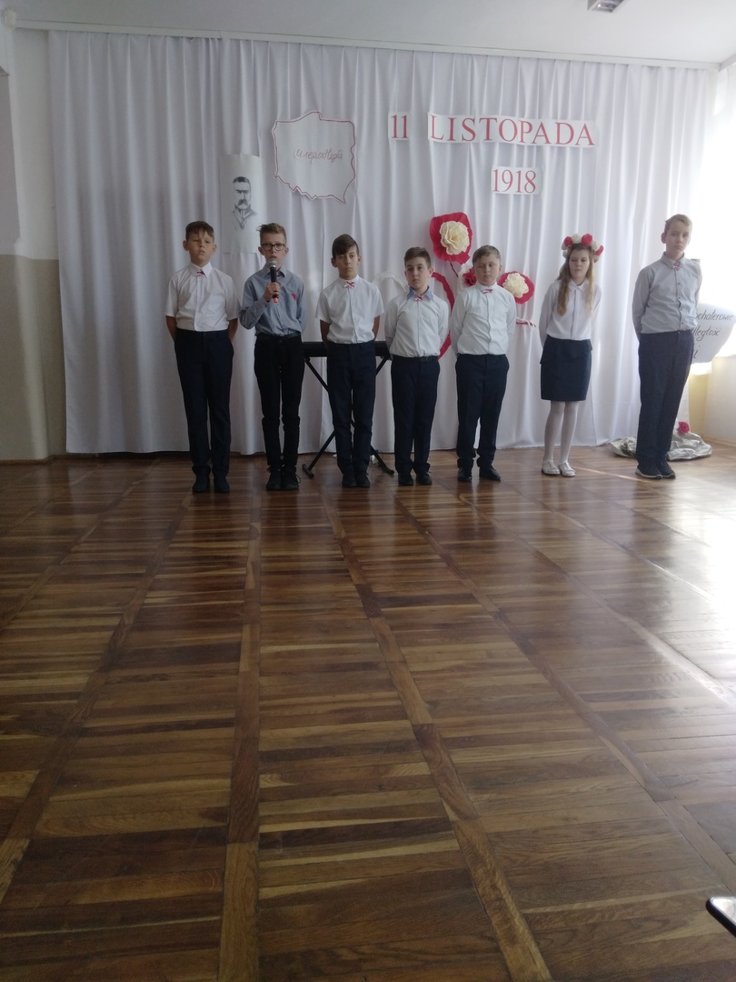 10 listopada w naszej szkole odbyła się uroczysta akademia z okazji kolejnej rocznicy Odzyskania Niepodległości przez Polskę. Punktualnie o godzinie 11:11 cała społeczność szkolna odśpiewała Hymn Narodowy, który rozpoczął występ artystyczny przybliżający wszystkim w bardzo ciekawy i przystępny sposób najważniejsze wydarzenia historyczne z tamtego okresu. Przekazywane treści przeplatane były pięknymi pieśniami patriotycznymi w wykonaniu naszych zdolnych uczniów.