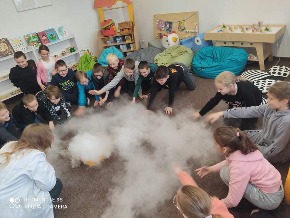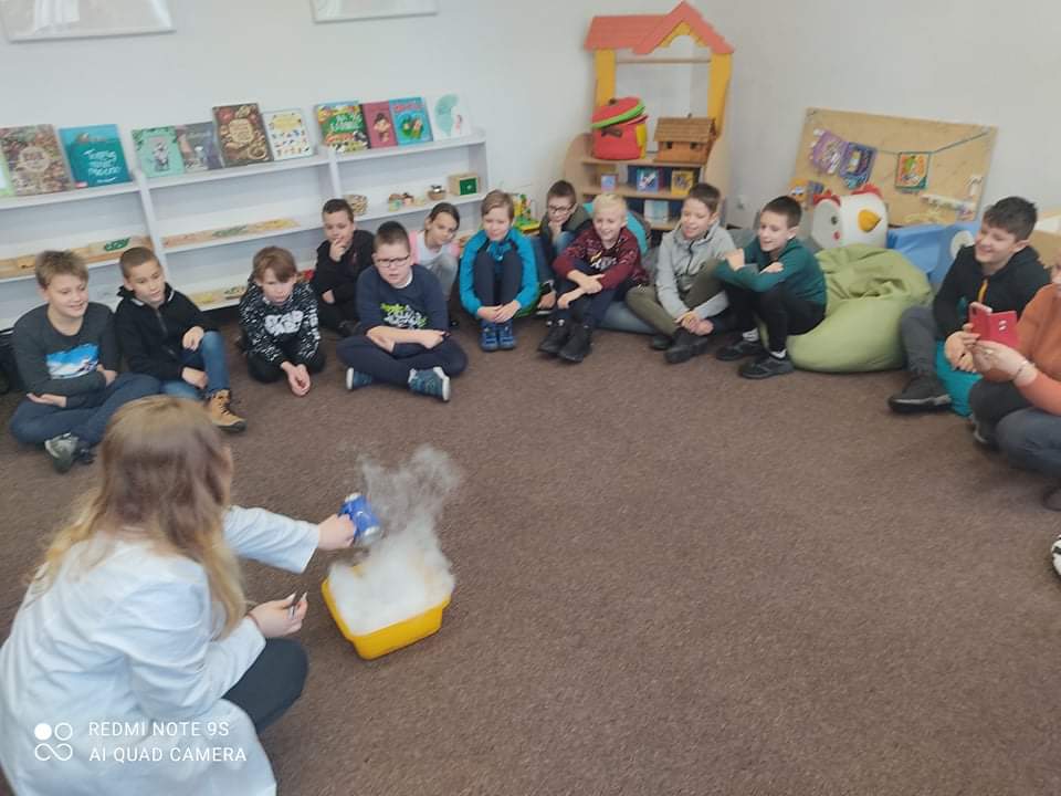 W dniu 17 listopada gościliśmy w Miejsko-Gminnej Bibliotece Publicznej w Szczekocinach. Dzięki pokazowi mogliśmy się poczuć jak w prawdziwym laboratorium. Od dzisiaj słowo SUBLIMACJA nie jest nam obce😊. Serdecznie dziękujemy za gościnę.