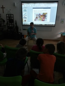 Przedszkolaki z ogromnym zaciekawieniem obejrzały prezentację oraz wysłuchały pogadanki na temat właściwej higieny jamy ustnej. Dowiedziały się, jak wyglądają narzędzia stomatologiczne, co to jest próchnica, dlaczego psują się zęby oraz jak należy prawidłowo je czyścić. Ogromną atrakcją były ćwiczenia praktyczne na eksponacie sztucznej szczęki. Pani Kasia przypomniała również dzieciom o potrzebie wizyt kontrolnych u stomatologa, a także