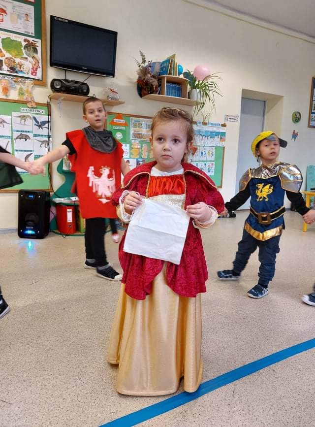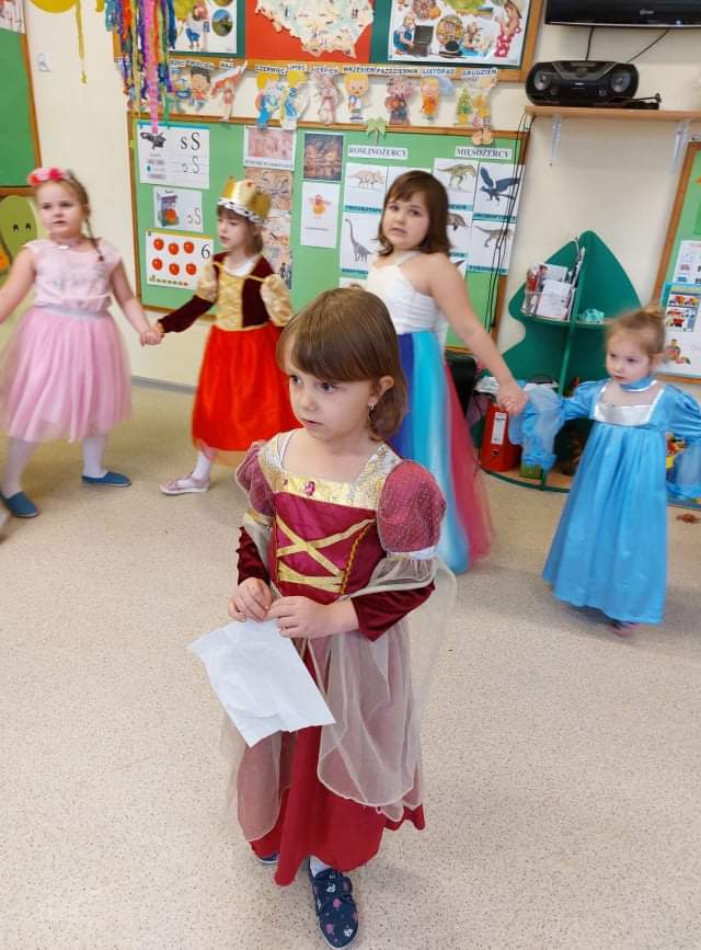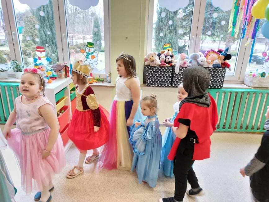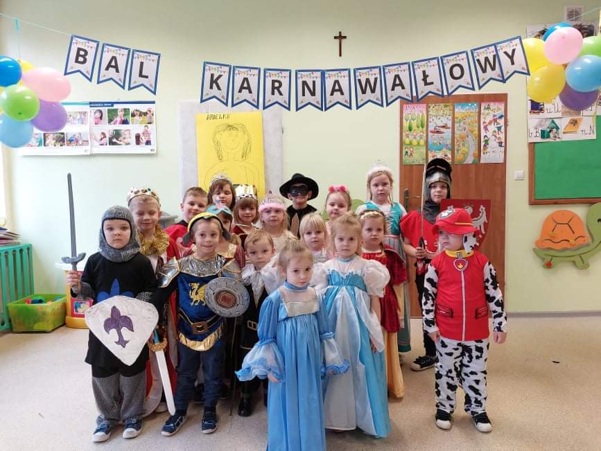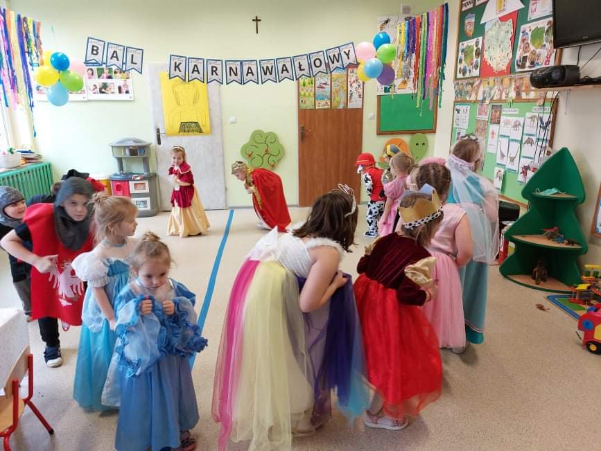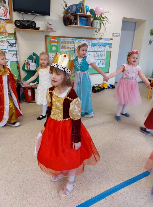 W dniu 10.02.2022r. w naszym przedszkolu odbył się bal karnawałowy organizowany pod hasłem „Bal u Królowej Jadwigi”. Jak na prawdziwym balu królewskim były piękne stroje i panowała przyjazna atmosfera. Wszystkie przedszkolaki świetnie bawiły się uczestnicząc w zabawach i pląsach przy ulubionej muzyce. Wspólna biesiada zakończyła się wybornym poczęstunkiem. To niezwykłe wydarzenie dostarczyło dzieciom pozytywnych przeżyć i wiele radości. Dziękujemy Rodzicom za zaangażowanie w przygotowaniu balu. Zapraszamy na fotorelację.