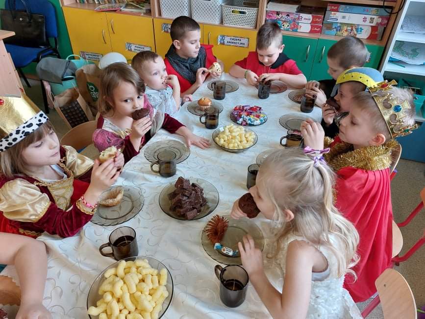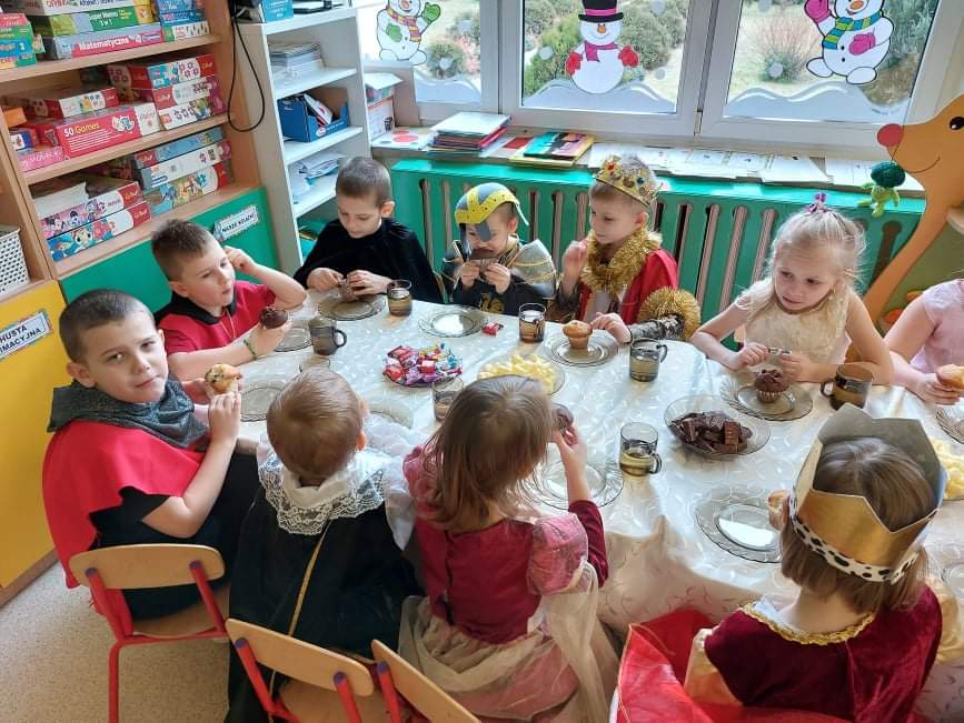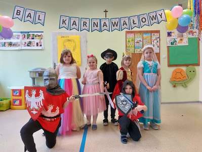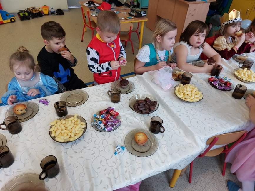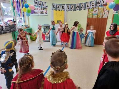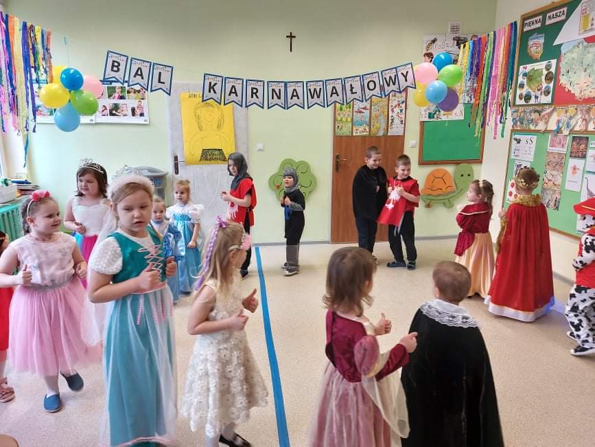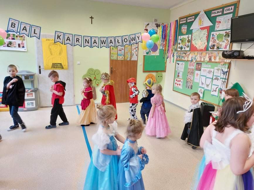 W dniu 10.02.2022r. w naszym przedszkolu odbył się bal karnawałowy organizowany pod hasłem „Bal u Królowej Jadwigi”. Jak na prawdziwym balu królewskim były piękne stroje i panowała przyjazna atmosfera. Wszystkie przedszkolaki świetnie bawiły się uczestnicząc w zabawach i pląsach przy ulubionej muzyce. Wspólna biesiada zakończyła się wybornym poczęstunkiem. To niezwykłe wydarzenie dostarczyło dzieciom pozytywnych przeżyć i wiele radości. Dziękujemy Rodzicom za zaangażowanie w przygotowaniu balu. Zapraszamy na fotorelację.