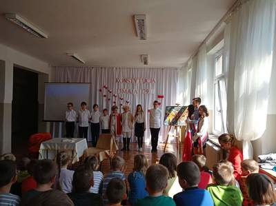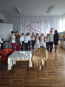 W dniu 29 kwietnia 2022 r. w naszej szkole odbyła się uroczysta akademia z okazji Święta Konstytucji 3 Maja. W programie artystycznym zaprezentowali się uczniowie kl. V oraz uczennica kl. VIII pod kierunkiem Pani Bożeny Haras- Wontorskiej.