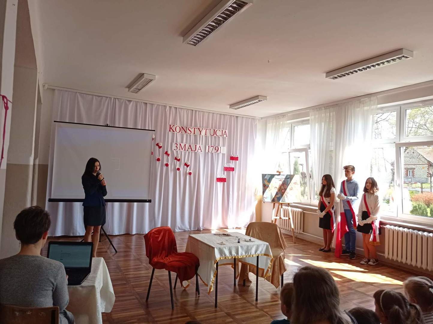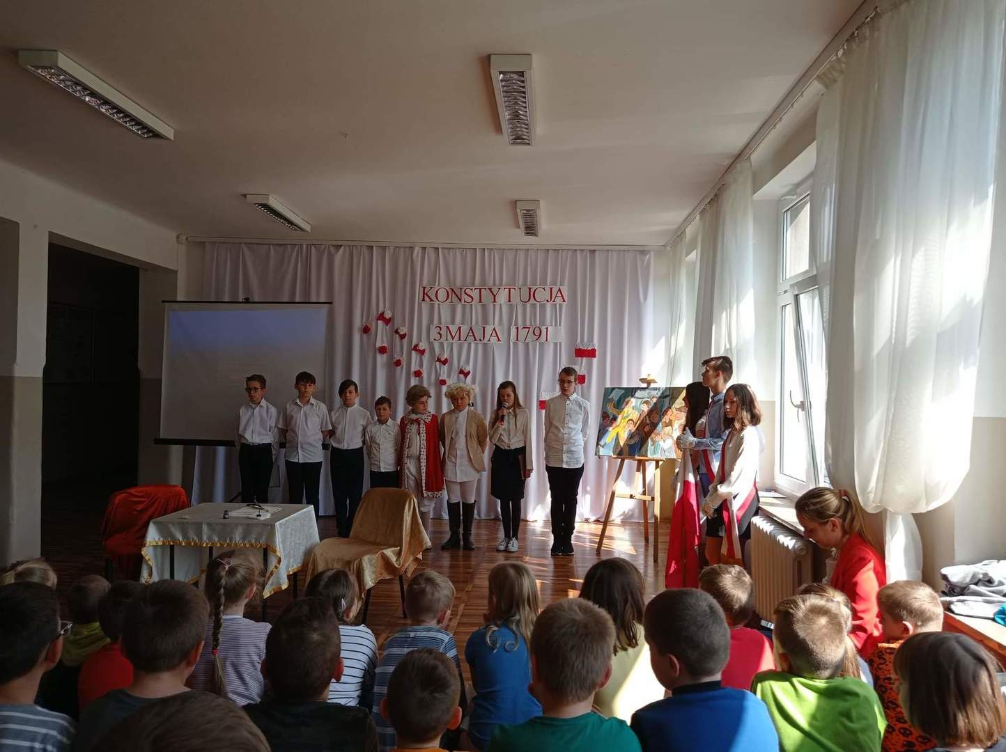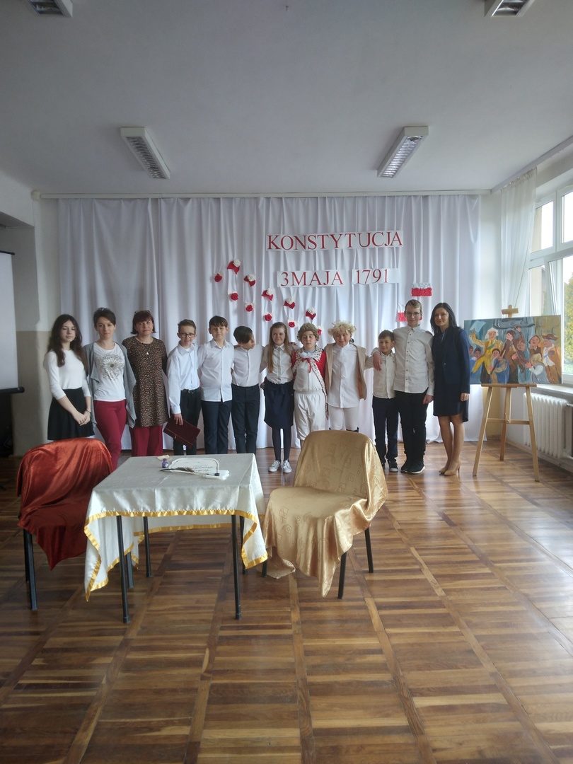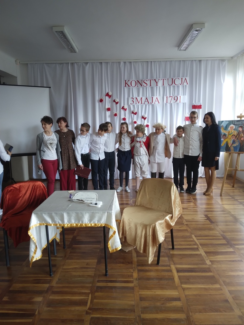 Uczniowie poprzez inscenizację słowno muzyczną przypomnieli najważniejsze wydarzenia z okresu Sejmu Wielkiego i Rozbiorów Polski . Uczniowie ubarwili uroczystość strojami , w których wystąpili, oddającymi ducha tamtych czasów. Całemu występowi uroczystego tonu nadały pieśni i piosenki o charakterze patriotycznym w wykonaniu naszych uczniów. Dopełnieniem była piękna dekoracja wykonana przez Panią Kingę Wiechę.
