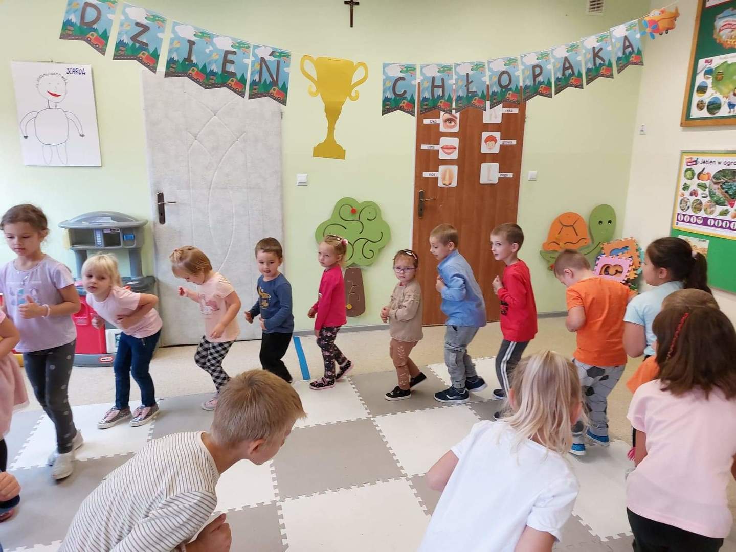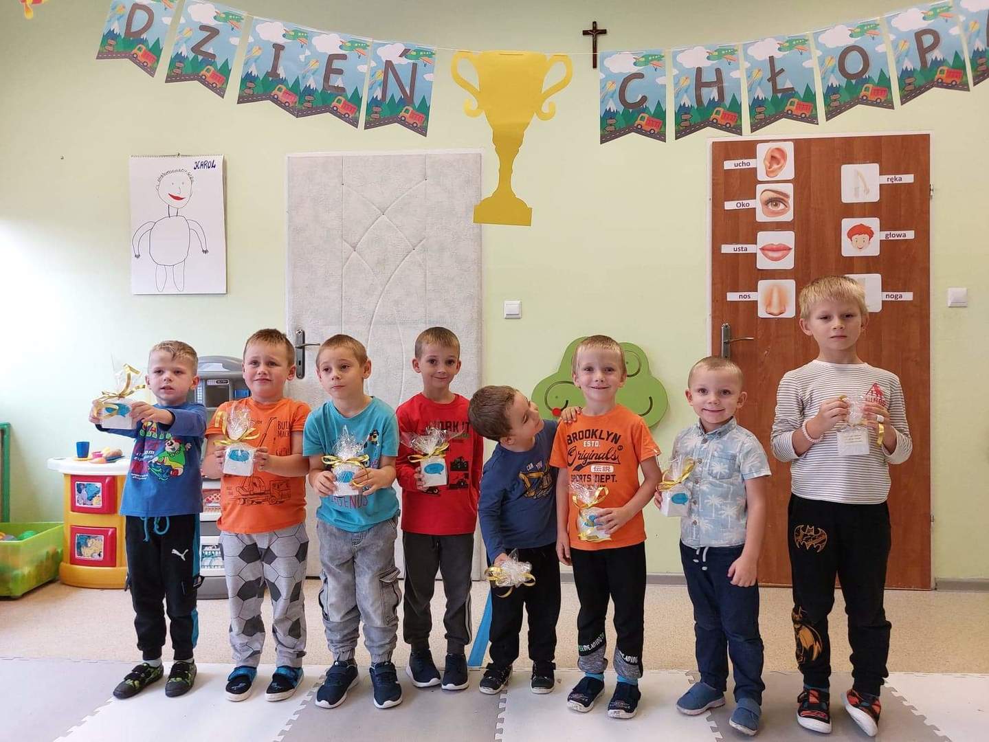 30 września chłopcy obchodzili w naszym przedszkolu swoje święto. Tego dnia wszystkie panie i dziewczynki dołożyły wszelkich starań, by każdy chłopiec mógł poczuć się wyjątkowo. Z tej okazji koleżanki złożyły chłopcom najlepsze życzenia, wręczyły upominki przygotowane przez rodziców oraz zaprosiły do wspólnej zabawy tanecznej. Atrakcji nie brakowało - było mnóstwo radości, a uśmiechnięte buzie przedszkolaków świadczą o miło spędzonym czasie.