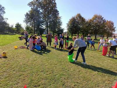 W piękny, słoneczny październikowy dzień cała społeczność przedszkolna uczciła Święto Pieczonego Ziemniaka. Powodem do corocznego uhonorowania tego warzywa jest jego kulinarna popularność, możliwość przypomnienia tradycji ludowych odbywających się podczas jesiennych zbiorów, a przede wszystkim wywołanie radości ze wspólnej zabawy oraz udziału w konkurencjach, których bohaterem jest ziemniak.