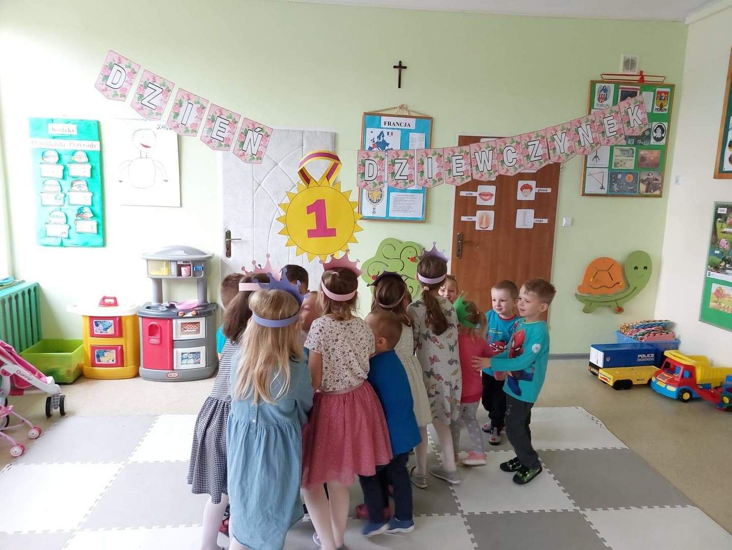 Tegoroczny Dzień Dziewczynek celebrowaliśmy w sposób wyjątkowy, bowiem chłopcy od samego rana zachowywali się jak prawdziwi dżentelmeni – byli bardzo mili, taktowni i szarmanccy. Z wielką elegancją złożyli swoim koleżankom najlepsze życzenia i wręczyli drobne upominki, po czym zaprosili je do wspólnych zabaw i pląsów przy muzyce. Ten dzień dostarczył wszystkim dzieciom dużo pozytywnych wrażeń, uśmiechu i radości. Nasze przedszkolaki udowodniły, że są na medal!!!