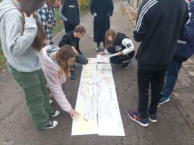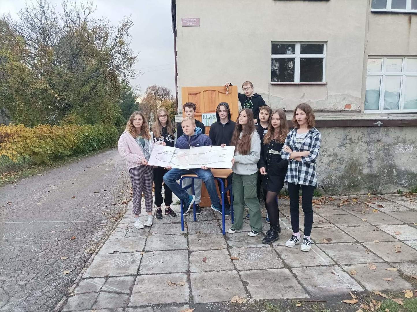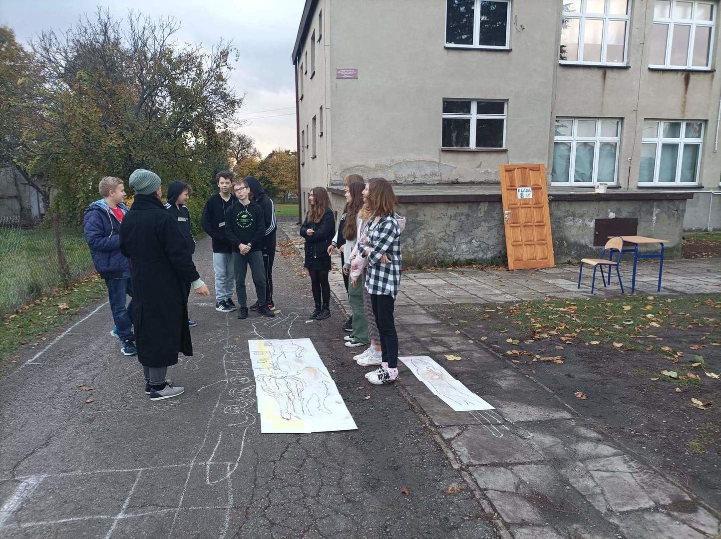 Aby utworzyć klasę na zewnątrz, uczniowie wymierzyli swoją aktualną salę, okna oraz tablice w niej zamontowane. Najważniejsze przedmioty postanowili wynieść i po prostu umieścić je na obrazie – w ich trójwymiarowej formie!