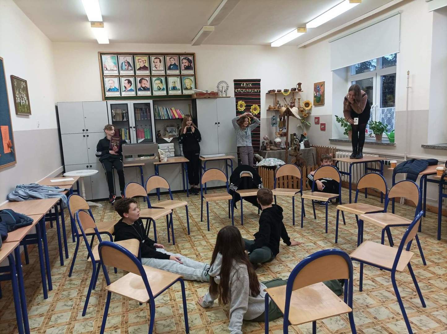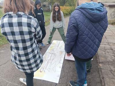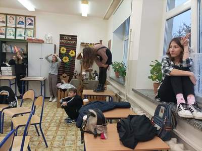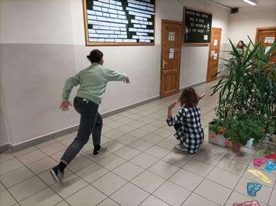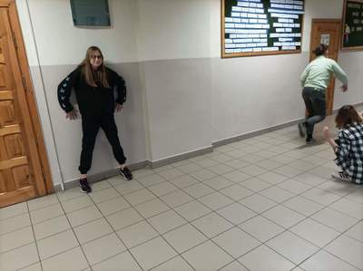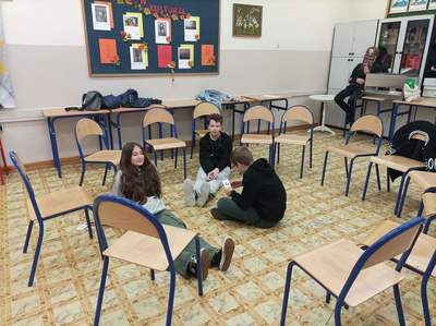 Po niezwykle ciekawym doświadczeniu (pełnym abstrakcji) tworzenia wymarzonej klasy na zewnątrz, udaliśmy się do budynku szkoły, gdzie rozpoczęliśmy działania z pracą, jaką dla nas przygotowała Katya Buchatska. Były to karty w różnych kolorach – jedne karty przedstawiały zwierzęta, inne przedmioty, a na ostatnich zapisano nazwy uczuć i emocji. Jak je wykorzystaliśmy? Zaczęliśmy od rozluźnienia atmosfery i przemieniliśmy się w zwierzęta – była to ciekawa praca z własnym ciałem i głosem! Przy tym zadaniu towarzyszyło nam wiele uśmiechu!