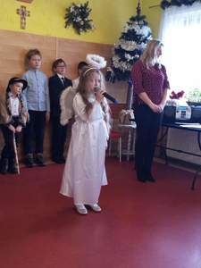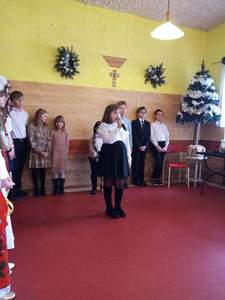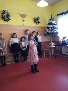 Z okazji zbliżających się Świąt Bożego Narodzenia dzieci złożyły życzenia, wręczyły drobny upominek. Zaśpiewały kolędy i pastorałki, które wprowadziły wszystkich w radosną atmosferę oczekiwania na narodziny Pana Jezusa.
