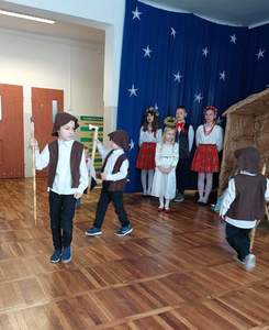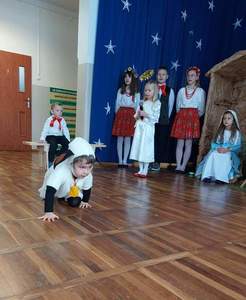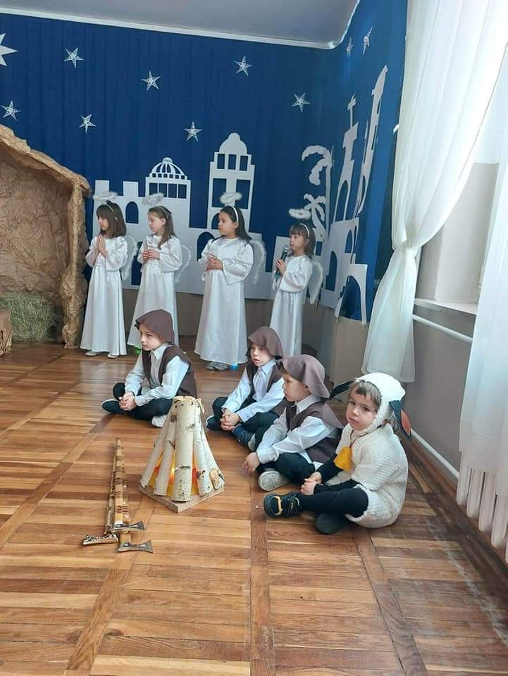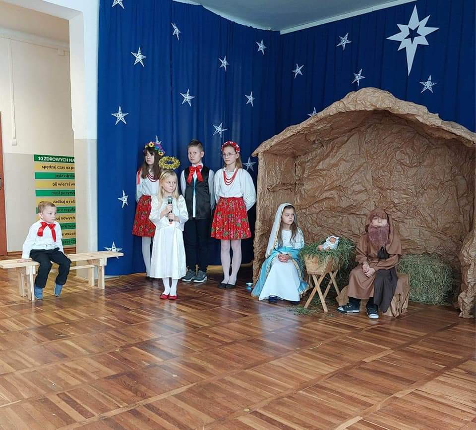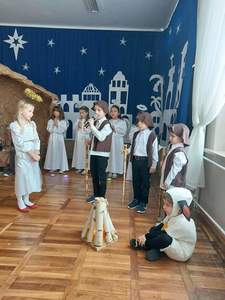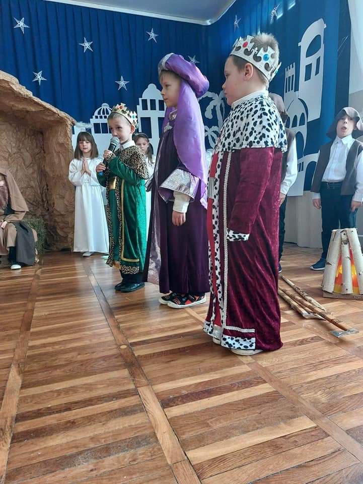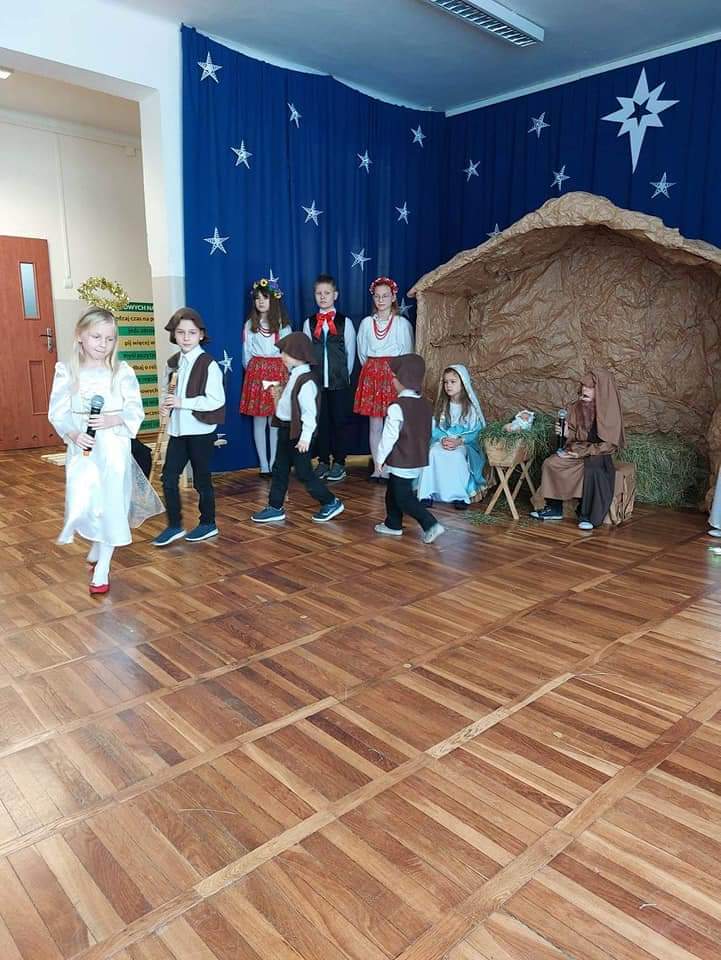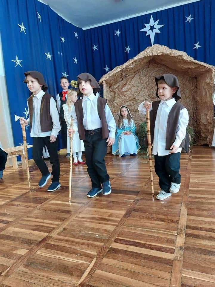 Okres Bożego Narodzenia to wyjątkowy i magiczny czas, pełen radości i serdecznych spotkań. Aby podkreślić niezwykły charakter świąt, tradycyjnie jak co roku w naszym przedszkolu, 21.12.2022 r. dzieci zaprezentowały całej społeczności szkolnej oraz swoim najbliższym, przygotowywane od kilku tygodni Jasełka. Podczas inscenizacji przedszkolaki przedstawiły opowieść o narodzinach Dzieciątka Jezus. Najmłodsi artyści w sposób szczególny odegrali przydzielone role, prezentując swoje umiejętności przed szerszą publicznością. Najświętszej Rodzinie pokłon oddali aniołowie, gwiazdki, pastuszkowie, owieczki, królowie i dzieci. Były wierszyki, śpiewy i układy taneczno – ruchowe. Urokliwa scenografia nawiązująca do Betlejem oraz kolorowe kostiumy były idealnym dopełnieniem widowiska. Całej uroczystości towarzyszyła przepiękna gama kolęd i pastorałek. Po części artystycznej wszyscy zgromadzeni wzięli udział we wspólnej Wigilii.