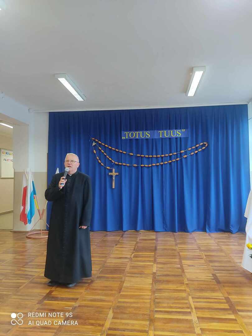 Gościem podczas akademii był proboszcz Parafii Narodzenia Najświętszej Maryi Panny w Goleniowach - ks. Leszek Sobczyk, który ufundował dla całej społeczności szkolnej dziesiątki różańca.