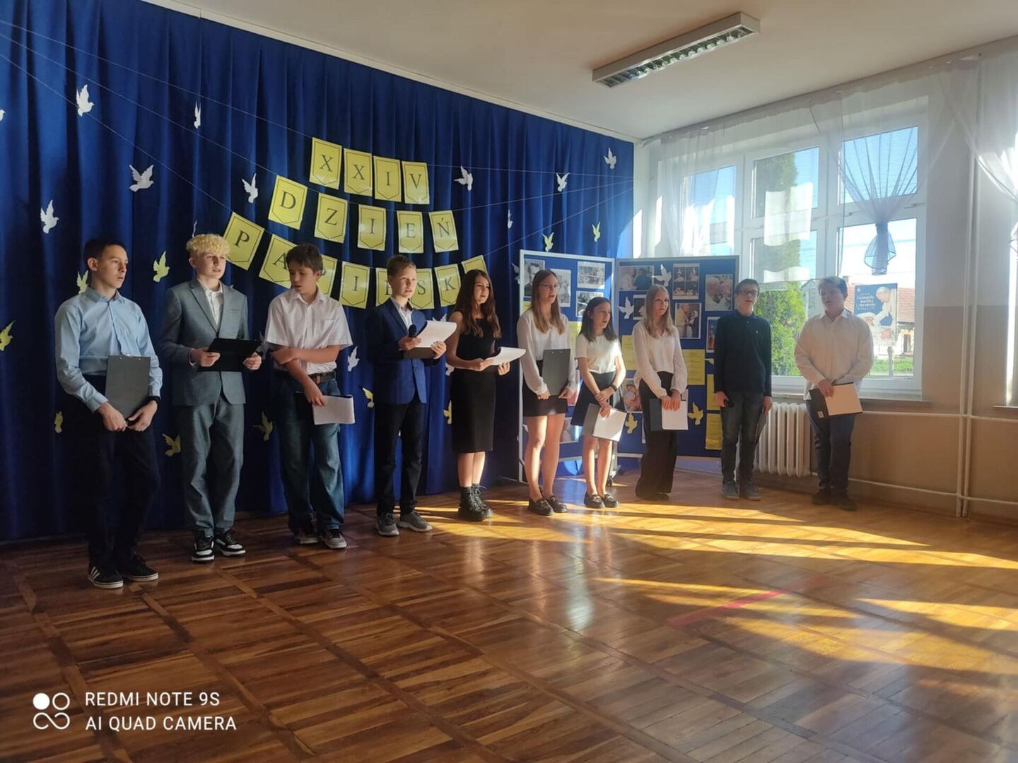 16 października uczniowie klasy VII (pod kierunkiem p. Urszuli Fiok-Grycner) zaprezentowali montaż słowno-muzyczny z okazji XXIV Dnia Papieskiego pod hasłem "Święty Jan Paweł II. Ewangelia starości i cierpienia."