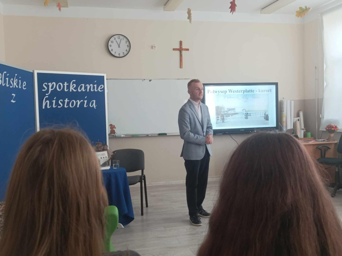 W ostatnim czasie uczniowie klas VII i VIII wzięli udział w projekcie pt. „Bliskie spotkanie z historią”. Tematyka zajęć poświęcona była obronie półwyspu Westerplatte w czasie II wojny światowej. Projekt składał się z dwóch części: wykładu i wywiadu. Wykład wygłosił historyk delegatury Instytutu Pamięci Narodowej w Kielcach, pan Jakub Mularczyk, który opowiedział o Wojskowej Składnicy Tranzytowej na Westerplatte, jej „kieleckiej załodze” oraz wydarzeniach z września 1939 r.