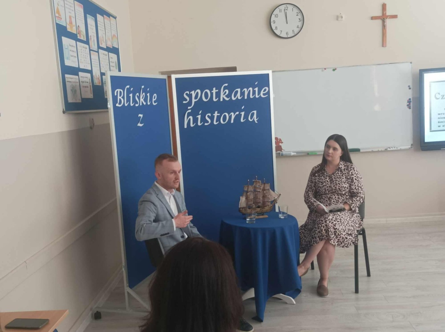 W drugiej części spotkania, nasza polonistka przeprowadziła wywiad ze wspomnianym gościem, a zarazem autorem publikacji „Z Kielecczyzny na Westerplatte. Losy obrońców Wojskowej Składnicy Tranzytowej”. Uczniowie m.in. mogli dowiedzieć się, jak było traktowane środowisko westerplatczyków przez władze komunistyczne, jakie działania podejmuje IPN, by uczcić pamięć heroicznych żołnierzy oraz jak przebiegał proces pisania książki.