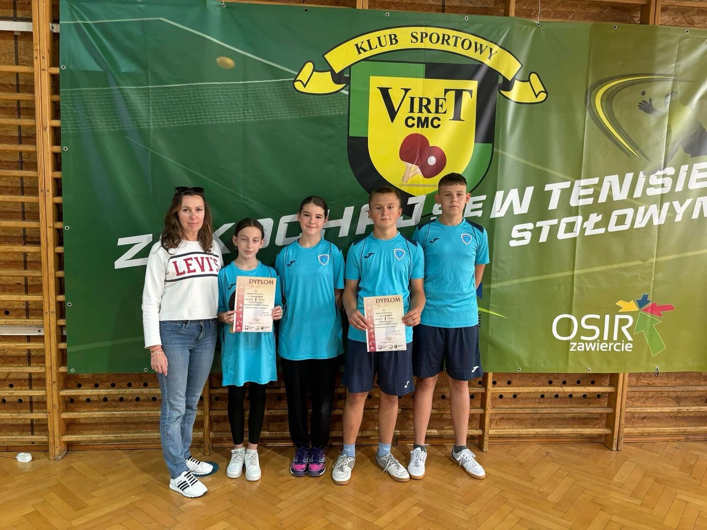 Uczniowie z klasy VIII - Michał Czech i Dawid Grzyb oraz uczennice z klasy VII - Weronika Andraczko i Nikola Sułecka brali udział w Powiatowych Igrzyskach Młodzieży Szkolnej Chłopców i Dziewcząt w tenisie stołowym.