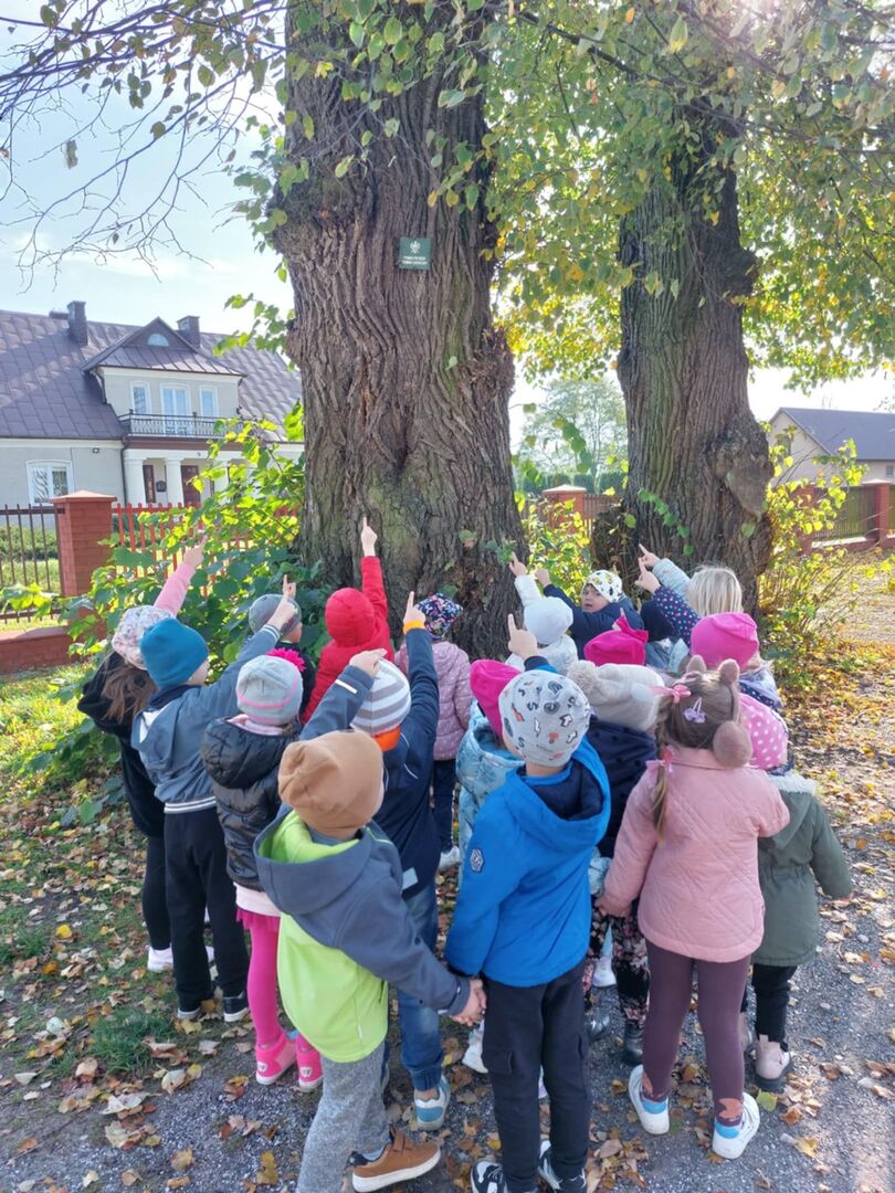 Podczas zajęć w terenie dzieci omówiły budowę drzewa, rozpoznawały gatunki, a także dowiedziały się o jego znaczeniu dla ekosystemu. Ponadto przedszkolaki zasadziły drzewko, ucząc się, jak ważne jest dbanie o środowisko i naszą planetę. Najmłodsi mieli również okazję zapoznać się z pomnikiem przyrody znajdującym się w pobliżu przedszkola. Dzieci uzyskały informację na temat wartości takiego okazu, po czym wspólnie dokonały pomiaru obwodu drzewa.
