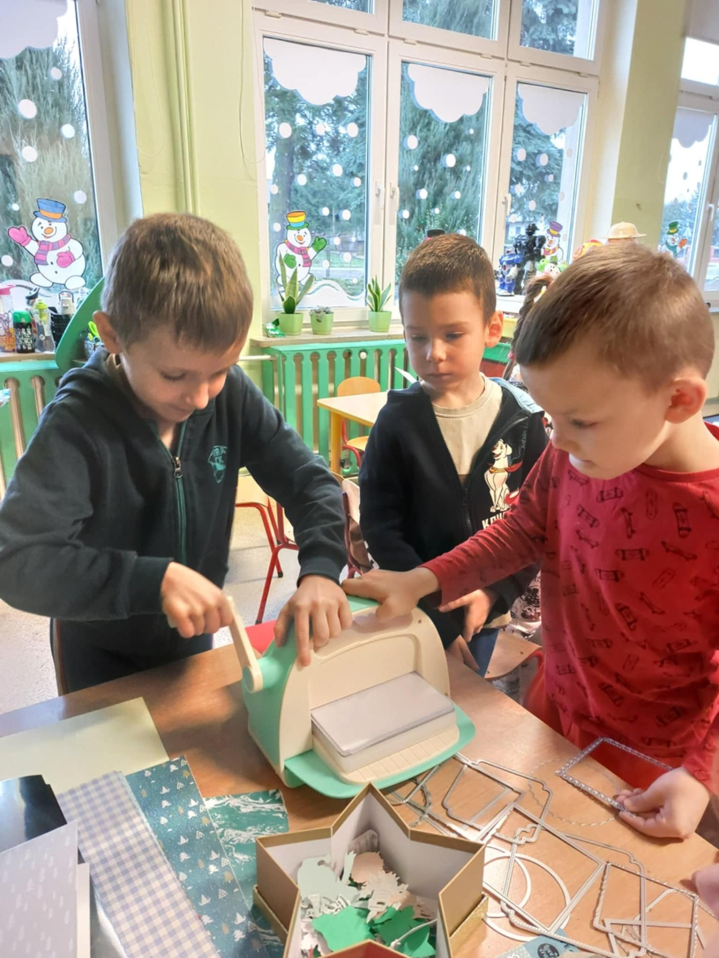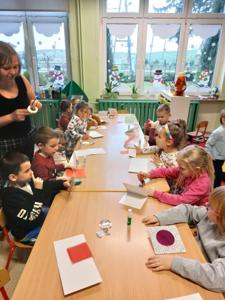 W ubiegłym tygodniu w naszym przedszkolu odbyły się warsztaty artystyczne poprowadzone przez p. Agatę Kwiecień. Dzieci z entuzjazmem tworzyły kolorowe i pełne fantazji kartki świąteczne. Każda z nich była wyjątkowa i odzwierciedlała indywidualne pomysły oraz wyobraźnię małych artystów.