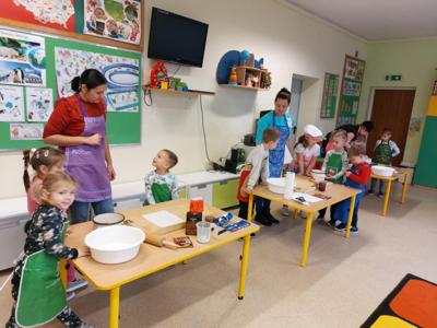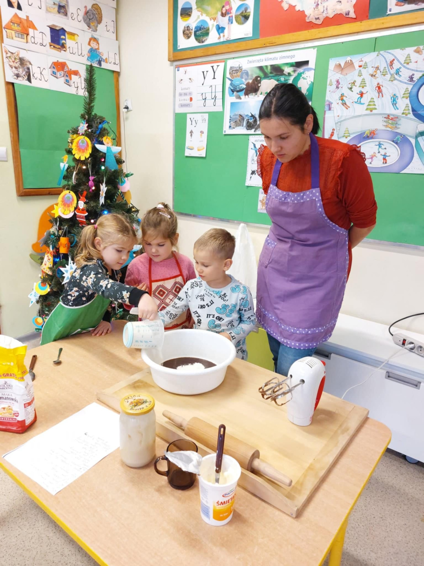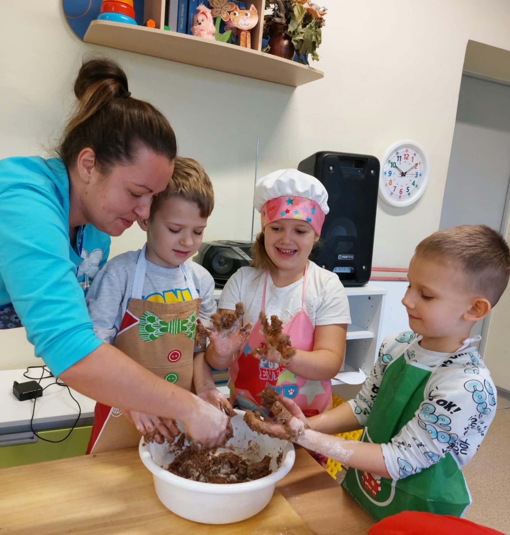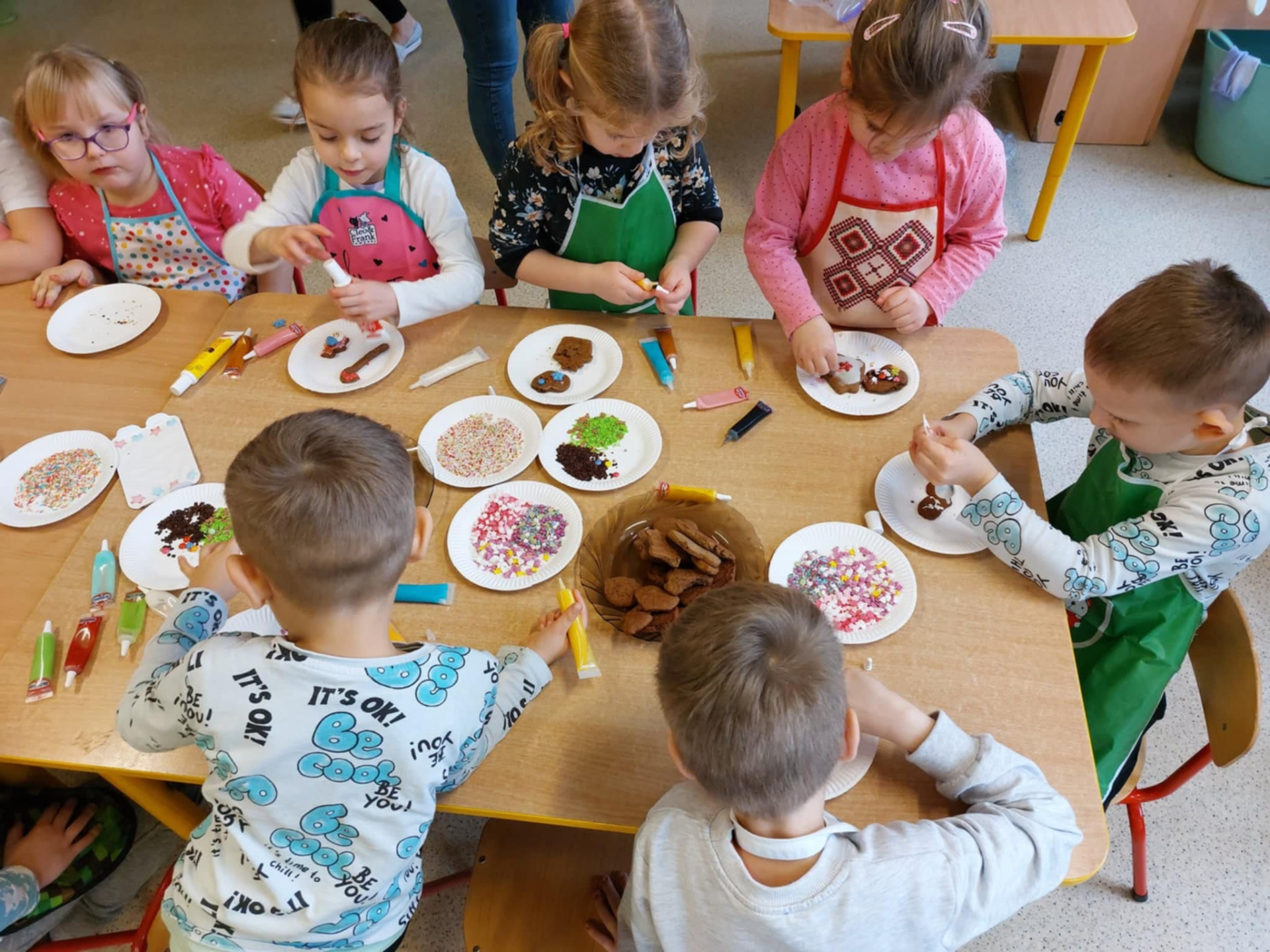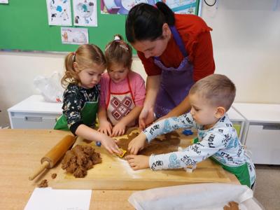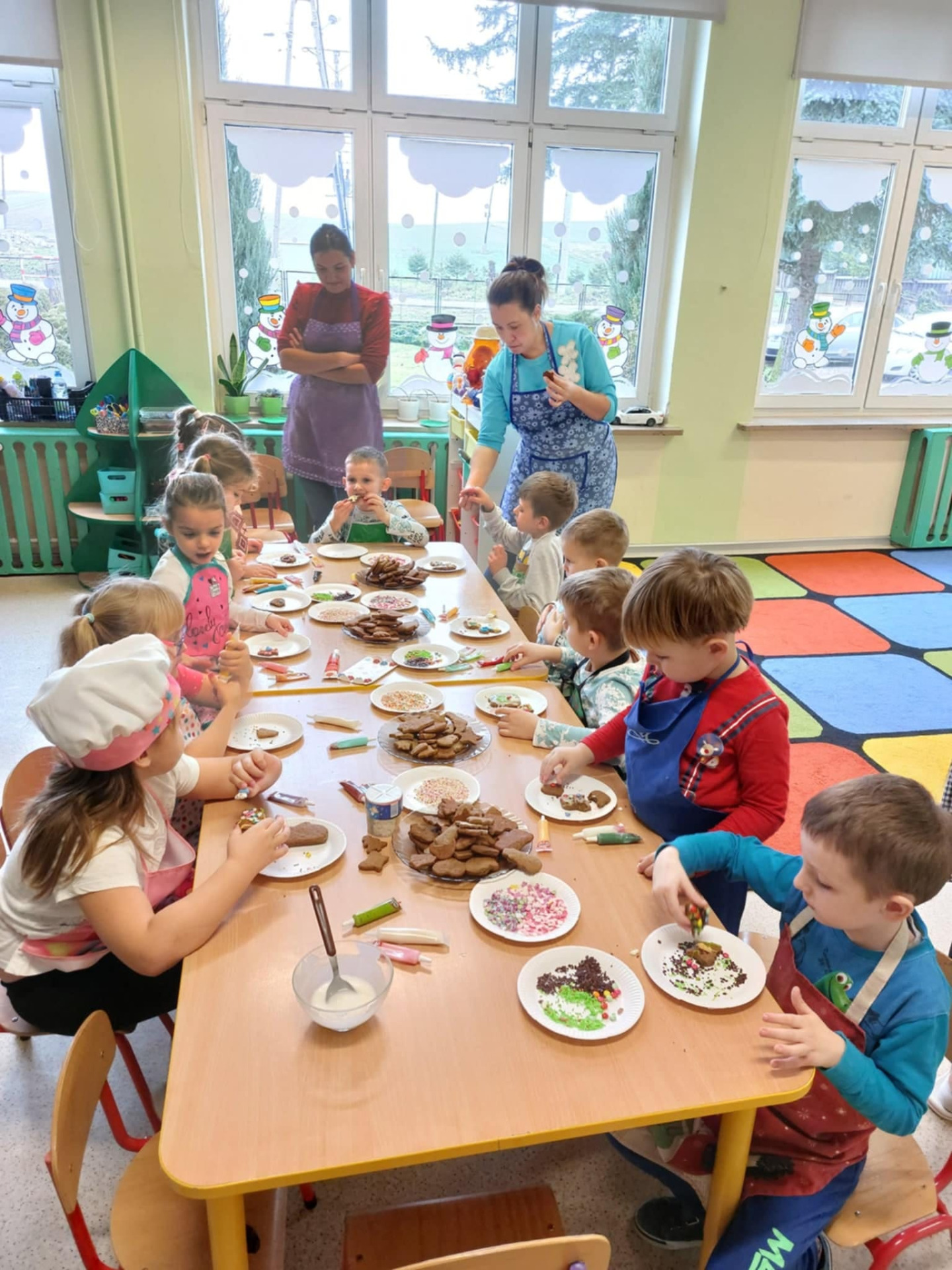 Pieczenie pierniczków to nie tylko przygotowanie świątecznych smakołyków, ale przede wszystkim chwila radości i doskonały sposób na wzmacnianie relacji rodzinnych. Z taką inicjatywą zostały zaproszone do przedszkola Mamy naszych milusińskich. Aromatyczne przyprawy korzenne, wspólne przygotowywanie ciasteczek (od ugniatania ciasta, poprzez wycinanie kształtów, aż po dekorowanie lukrem i kolorowymi posypkami), a także wesołe, spontaniczne rozmowy sprawiły, że było to miłe wydarzenie, które wywołało uśmiechy na twarzach zarówno dzieci, jak i dorosłych.