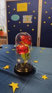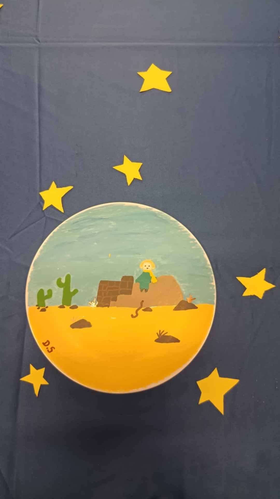 Zadaniem wychowanków było wyselekcjonowanie najważniejszych wydarzeń z lektury, przedstawienie ich w formie graficznej na ceramicznych talerzach i ułożenie dzieł w kolejności chronologicznej. Zwieńczeniem pracy było zaprojektowanie wizerunku wystawy. Wszystkie elementy miały przedstawiać wędrówkę bohatera po wszechświecie. Wystawę wzbogaciła również piosenka Igi Porady „Mały Książę i róża”, która rozbrzmiewając na szkolnym korytarzu wprowadziła wszystkich zainteresowanych w tematykę lektury.