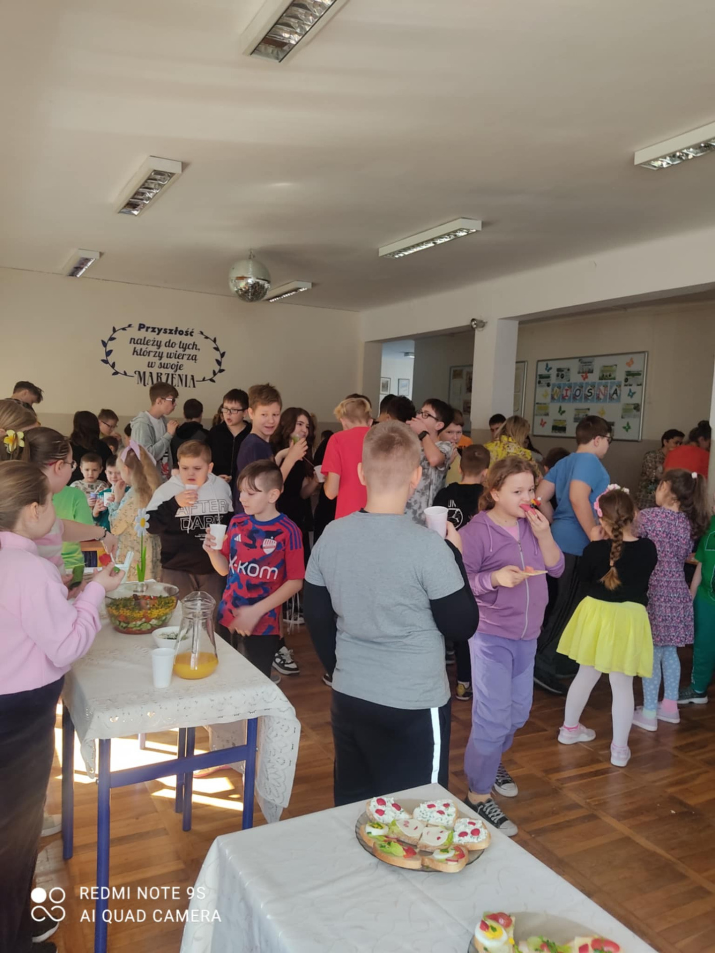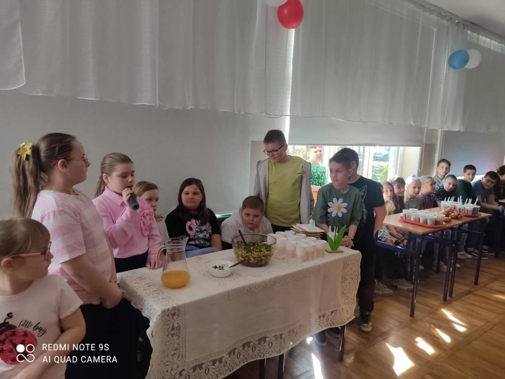 Jak co roku uczniowie ten dzień spędzili poza ławkami szkolnymi. Dzień wypełniły różne aktywności. Ponieważ 21 marca to nie tylko pierwszy dzień wiosny, ale również dzień osób z zespołem Downa - włączylismy się do tej akcji społecznej. Również w tym dniu przypomnieliśmy zasady zdrowego odżywiania. Teoria została przełożona na praktykę - uczniowie i przedszkolaki przygotowały zdrowe przekąski z wykorzystaniem jak największej ilości warzyw i owoców. Nie zabrakło również aktywności fizycznej - zumba na rozgrzewkę, a potem rozgrywki sportowe na boisku szkolnym. Najmłodsi spędzili czas kreatywnie wykonując przepiękne portrety Pani Wiosny w szalonej fryzurze.