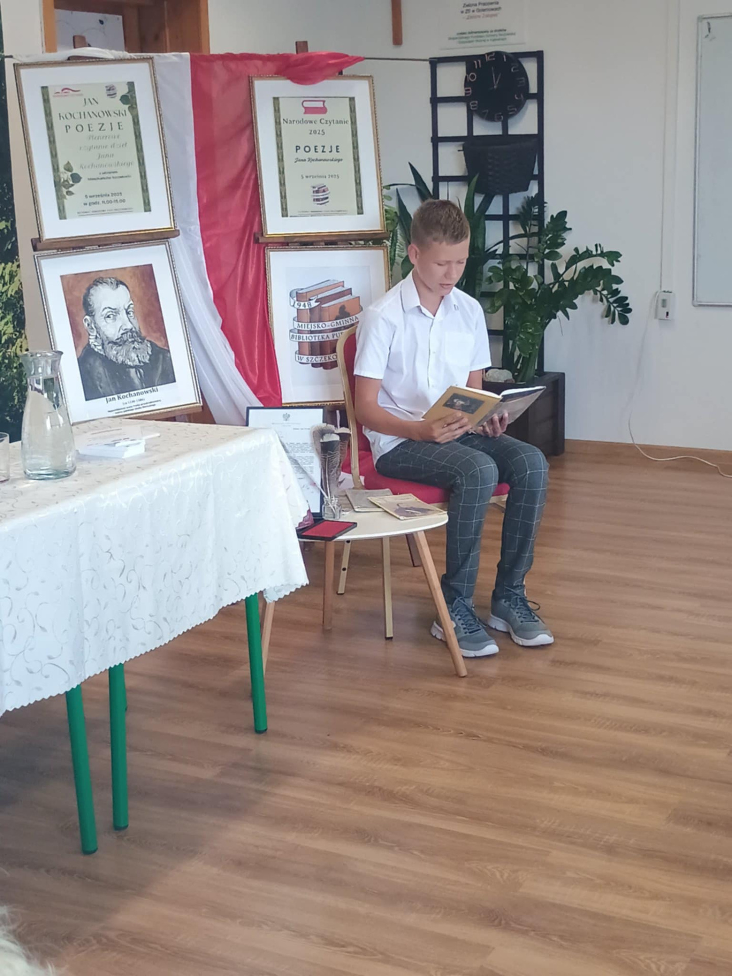 5 września 2025 roku uczniowie klasy VIII wzięli udział w ogólnopolskiej akcji Narodowe Czytanie, która w tym roku była poświęcona twórczości Jana Kochanowskiego.