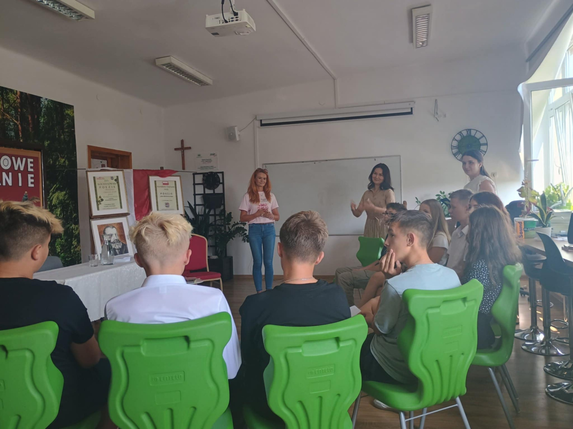 Spotkanie było nie tylko ciekawą lekcją literatury, ale także pięknym sposobem na wspólne uczczenie dziedzictwa jednego z najwybitniejszych twórców polskiej kultury. Za przygotowanie uczniów do tego wydarzenia oraz scenografię odpowiadała Pani Iwona Mularczyk.