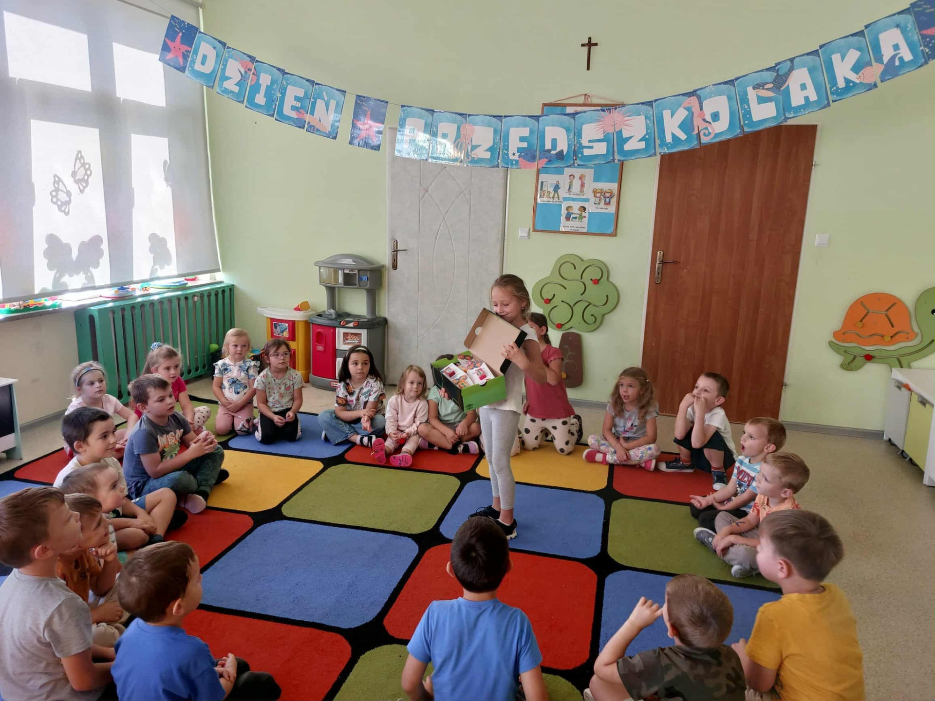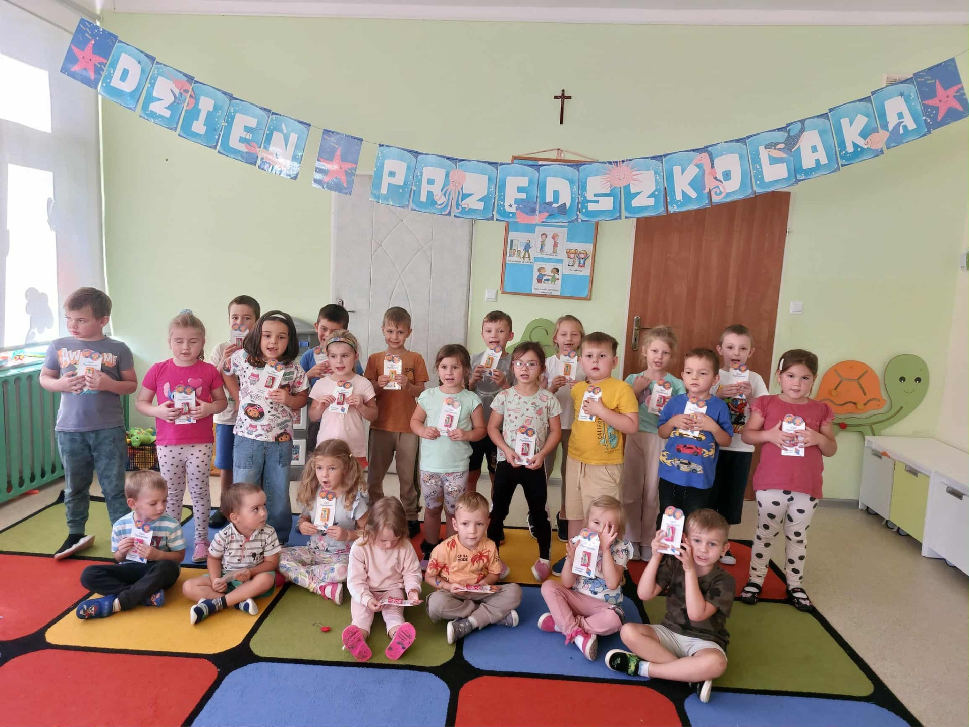 „Dzień Przedszkolaka” to radosny dzień, w którym wszystkie dzieci – małe i duże – są prawdziwymi bohaterami! W naszym przedszkolu to jedno z najbardziej wyczekiwanych przez milusińskich wydarzeń w całym roku. Zabawa, tańce, śpiew i upominki – to tylko niektóre z atrakcji, jakie czekały na naszych najmłodszych w tym szczególnym dniu. Tradycyjnie wszystkie przedszkolaki powitał marynarz Mike, który jak co roku przygotował dla nich wyjątkową przygodę! Aby odnaleźć ukryty skarb, mali odkrywcy musieli wykonać szereg „morskich zadań” – pełnych ruchu, zagadek i śmiechu. To był dzień pełen radości, emocji i wspólnej zabawy, który na długo pozostanie w pamięci naszych przedszkolaków! - Ewelina Kapłon
