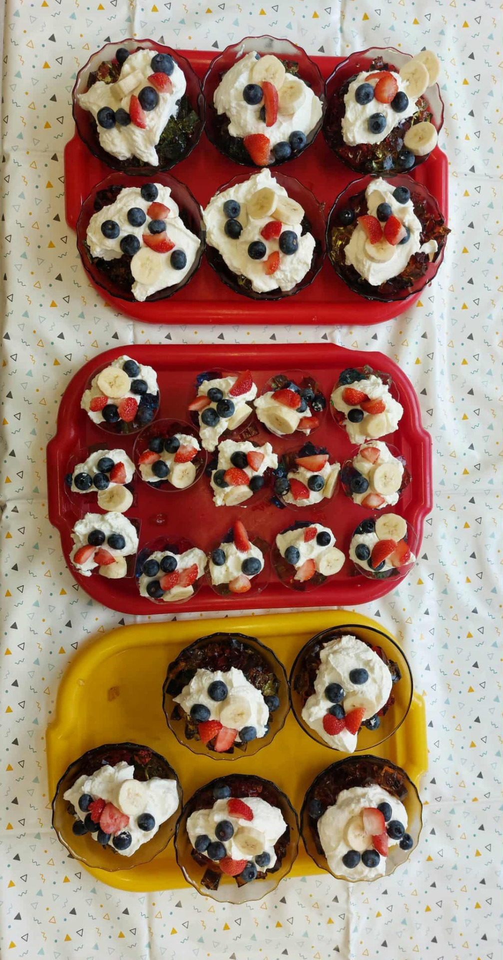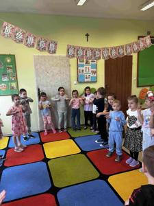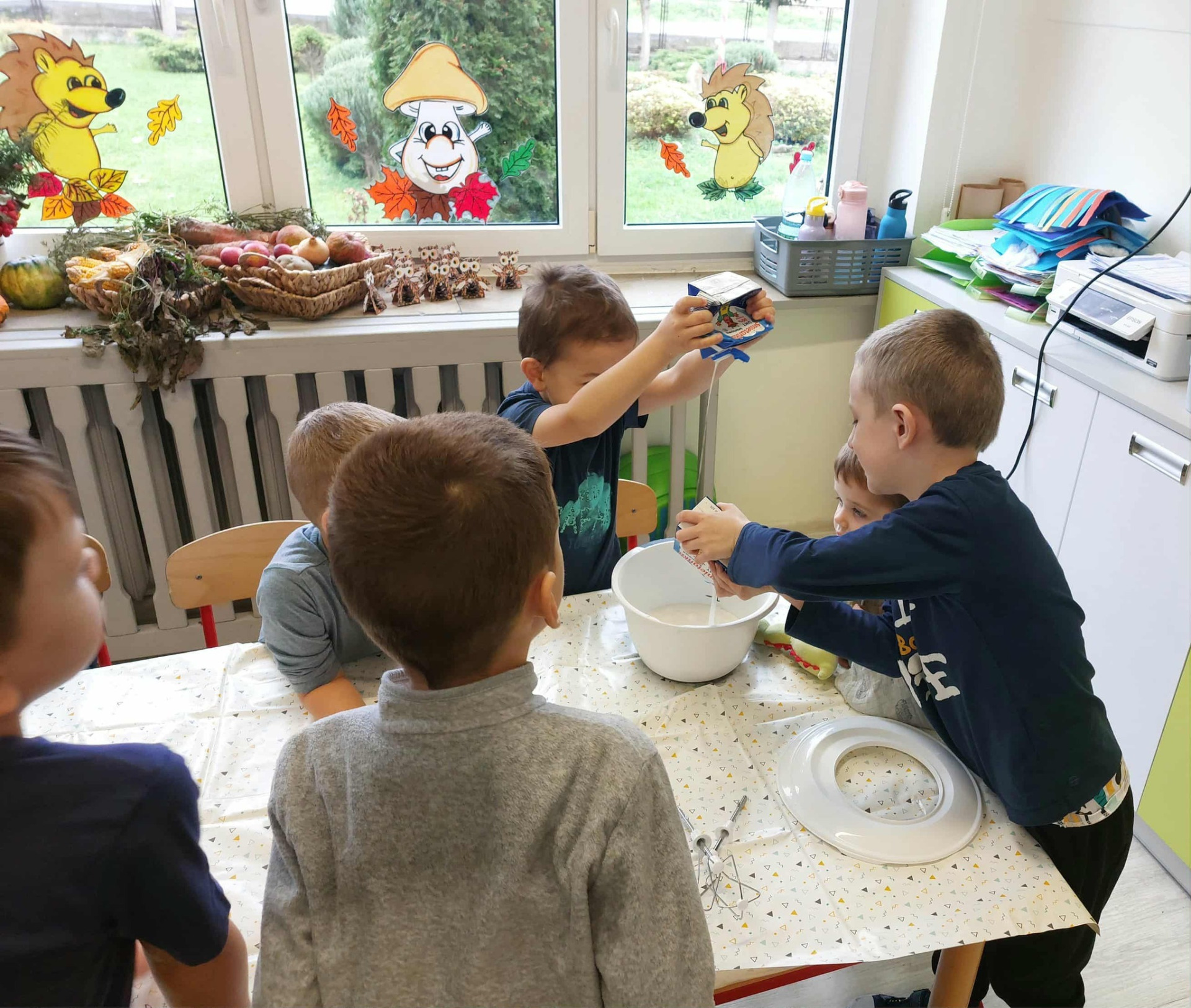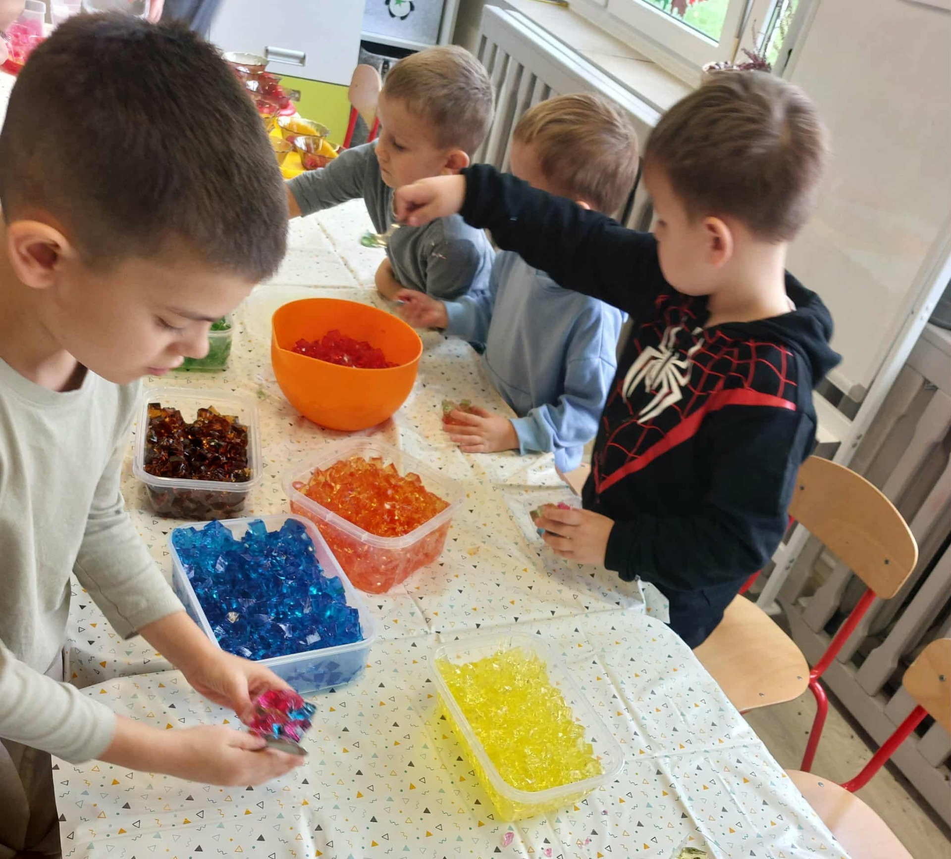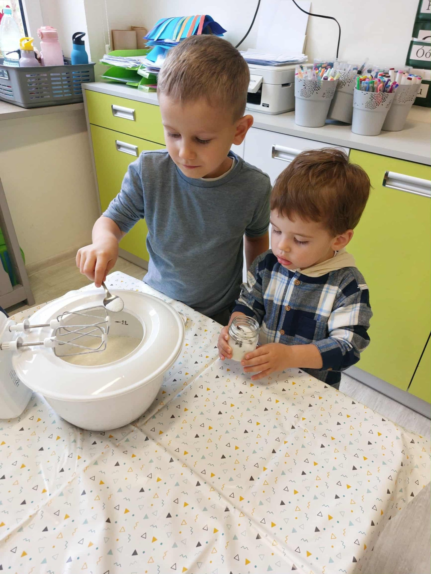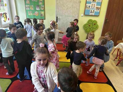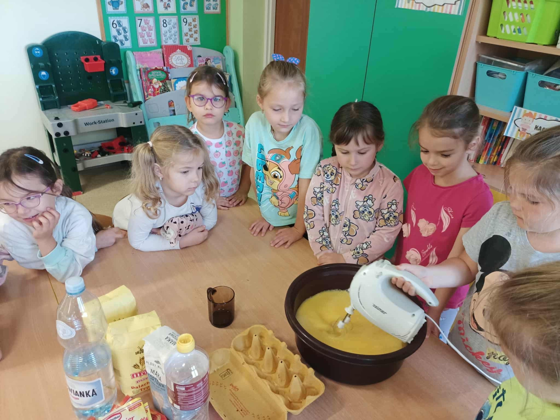 Niedługo później przyszedł czas na Dzień Dziewczynek. Tym razem to chłopcy zadbali o niespodziankę — wspólnie przygotowali pyszne, kolorowe deserki, którymi poczęstowali swoje koleżanki. W obu tych wyjątkowych dniach, oprócz przygotowanych smakołyków, na dzieci czekało jeszcze wiele atrakcji — tańce, zabawy i wesołe konkurencje, które wywołały mnóstwo śmiechu i dobrej energii.