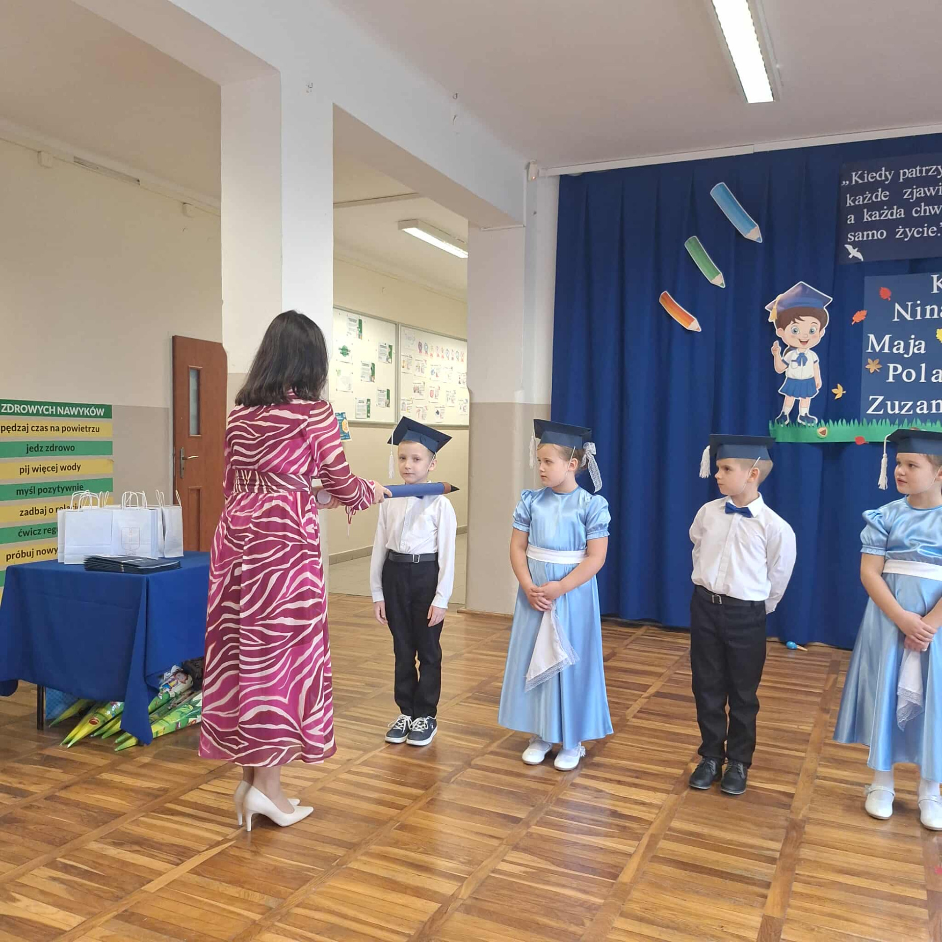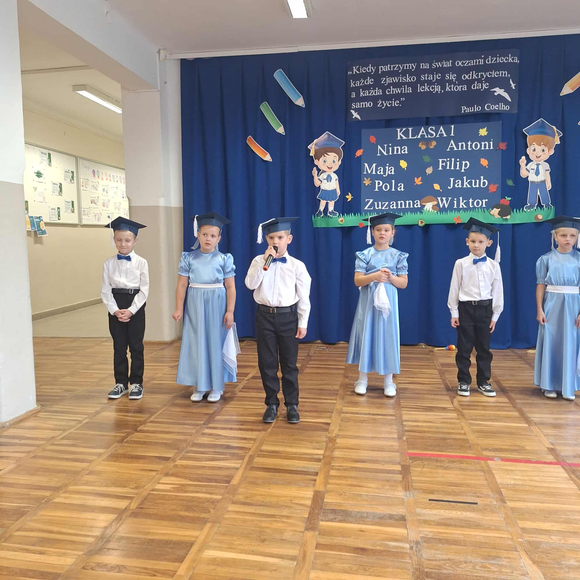 W dniu 30 października 2025 roku w naszej szkole odbyła się Uroczystość Ślubowania uczniów klasy pierwszej. To doniosłe wydarzenie stanowi jeden z najważniejszych momentów w życiu każdego młodego człowieka – symboliczne włączenie do grona społeczności szkolnej. Uroczystość rozpoczęła się częścią artystyczną w wykonaniu pierwszoklasistów, którzy z gracją i powagą zatańczyli Poloneza. Mali artyści z ogromnym zaangażowaniem recytowali wiersze, śpiewali piosenki oraz grali na instrumentach muzycznych melodię do utworu „Marsz Radetzky’ego”. Ich występ został przyjęty z wielkim entuzjazmem i nagrodzony gromkimi brawami przez zgromadzonych gości, rodziców i nauczycieli. Po części artystycznej nastąpił najbardziej podniosły moment – akt ślubowania oraz pasowania na ucznia, którego dokonała Pani Dyrektor Ewelina Rolek. Wypowiadając słowa ślubowania, dzieci złożyły uroczystą przysięgę, że będą godnie reprezentować szkołę, pilnie się uczyć oraz szanować swoich nauczycieli i kolegów. Od tej chwili zostali oni oficjalnie przyjęci do grona uczniów naszej szkoły. Po zakończeniu ceremonii na pierwszoklasistów czekały niespodzianki. Rodzice przygotowali słodkie upominki w postaci tradycyjnych rożków obfitości, natomiast Pan Burmistrz Jacek Lipa oraz przedstawiciele Zarządu Stowarzyszenia na Rzecz Rozwoju Edukacji w Goleniowach, Pani Prezes Agnieszka Piątkowska i Wiceprezes Karolina Krzysiek, obdarowali dzieci pamiątkowymi prezentami. Uroczystość przebiegła w serdecznej atmosferze. Dzień ślubowania na długo pozostanie w pamięci uczniów, rodziców oraz całej społeczności szkolnej jako piękne i radosne wydarzenie, rozpoczynające nowy etap w życiu naszych najmłodszych wychowanków. - Justyna Dudek