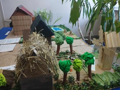 Podstawa pod makietę ( las, wsie, pola uprawne): Wiktoria Molenda, Maja Wrona.