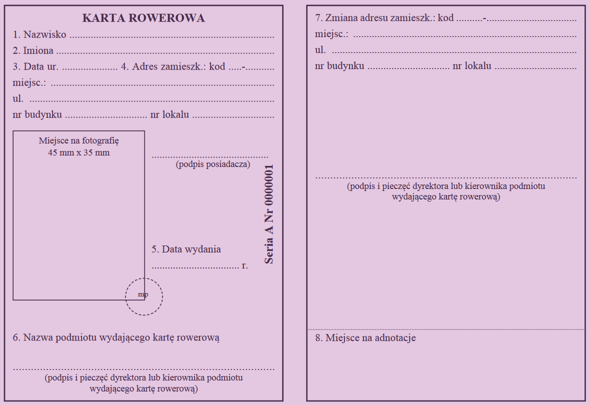 Osoby powyżej 10 roku życia (i poniżej 18) otrzymują kartę rowerową od dyrektora szkoły po wykazaniu się niezbędnymi kwalifikacjami.
